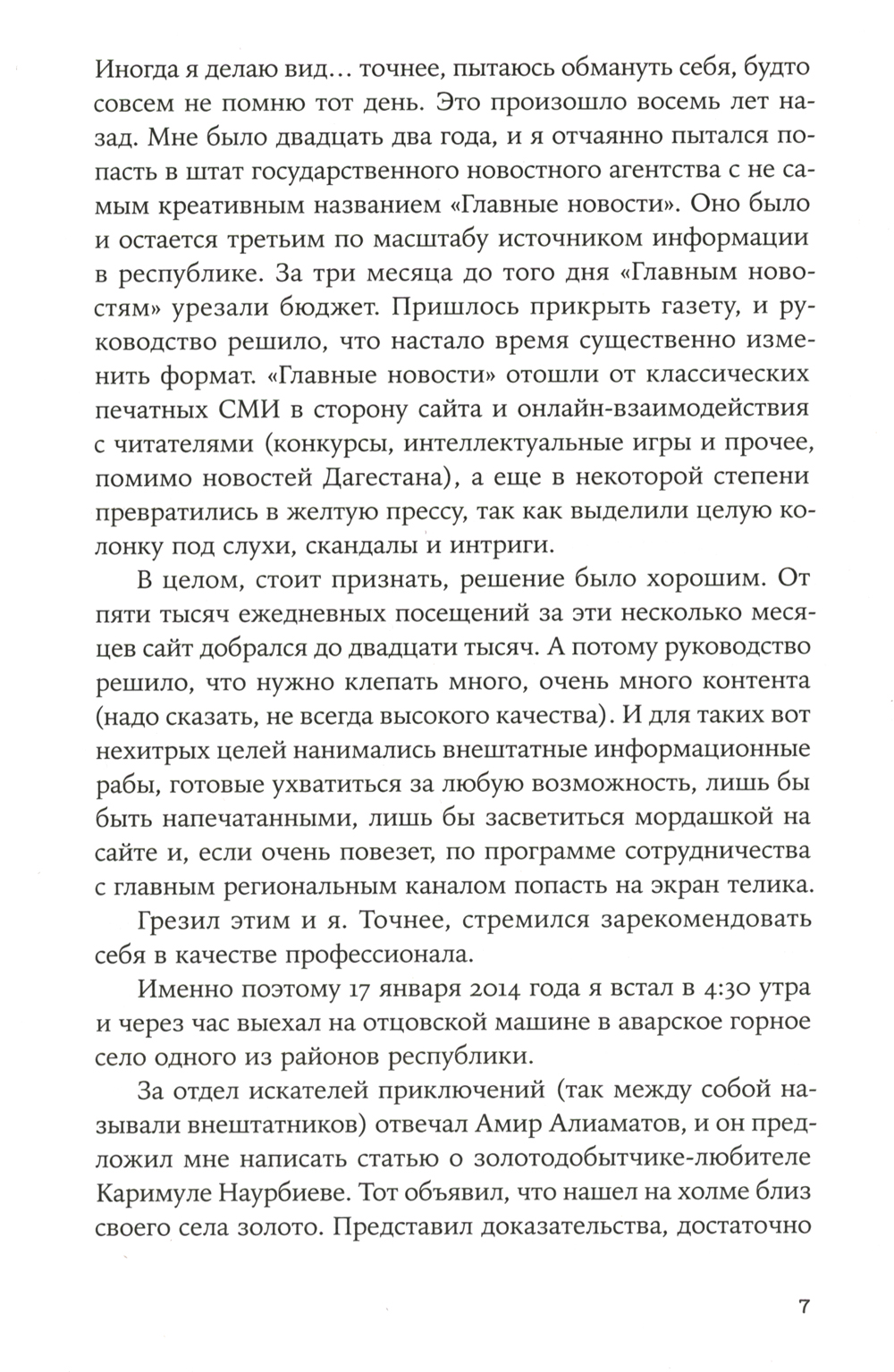 Остросюжетный психологический детектив, который отличают яркие герои и мастерски выстроенная интрига. В дагестанское горное село, где только что произошло жестокое убийство, волей случая попадает молодой журналист из Махачкалы. Поначалу увлеченный расследованием страшного преступления, он все больше осознает, как погружается в мрачную, холодную и враждебную атмосферу села N, будто покрывающего убийцу.| Издательство | Альпина Паблишер ООО |