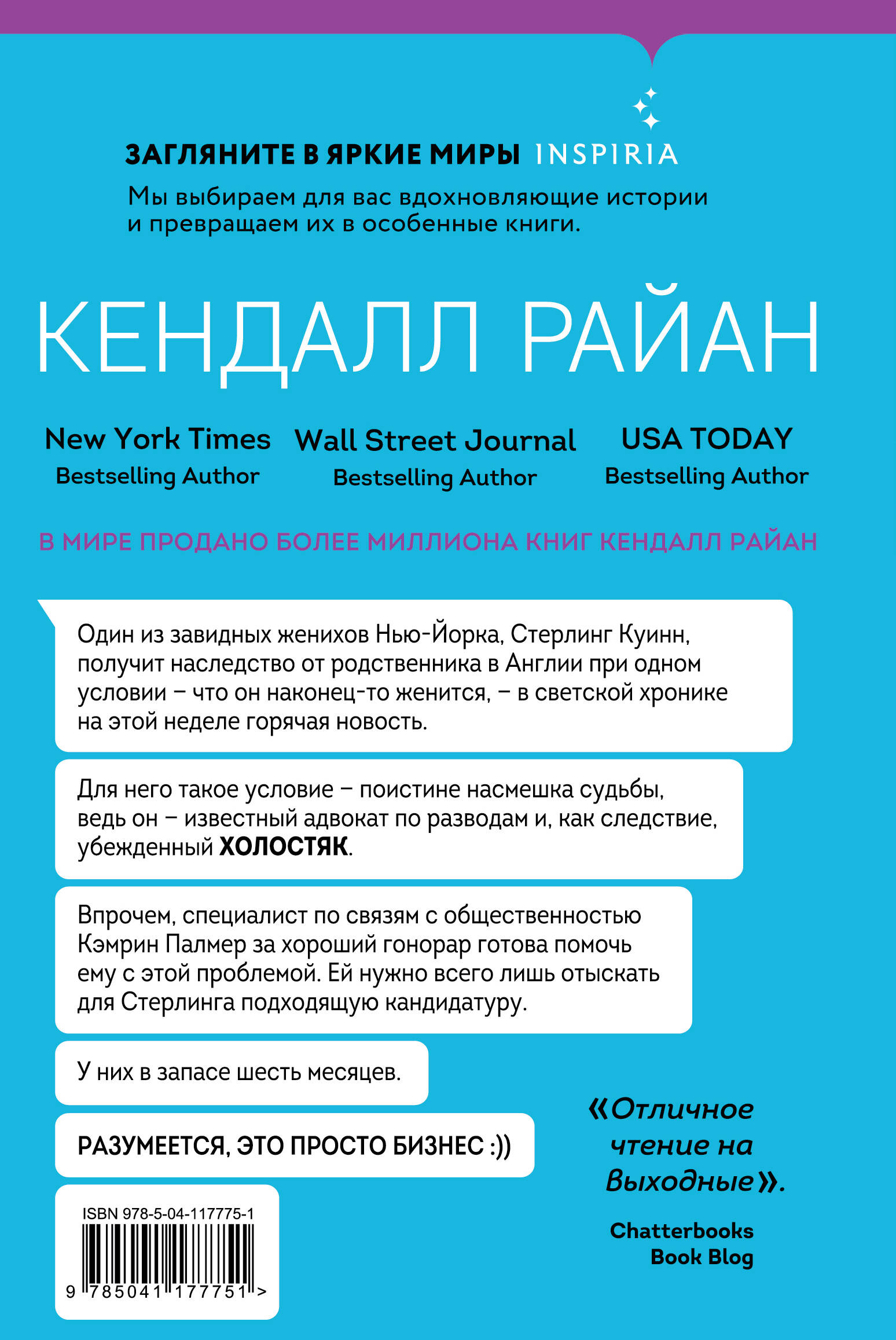 "Один из завидных женихов Нью-Йорка, Стерлинг Куинн, получит наследство от родственника в Англии при одном условии - что он наконец-то женится", - в светской хронике на этой неделе горячая новость. Потому что для Стерлинга Куинна такое условие - поистине насмешка судьбы, ведь он - известный адвокат по разводам и как следствие убежденный холостяк. Впрочем, специалист по связям с общественностью Кэмрин Палмер за хороший гонорар готова помочь ему с этой проблемой. Ей нужно всего лишь отыскать для Стерлинга подходящую кандидатуру. У них в запасе шесть месяцев. Разумеется, это просто бизнес.
