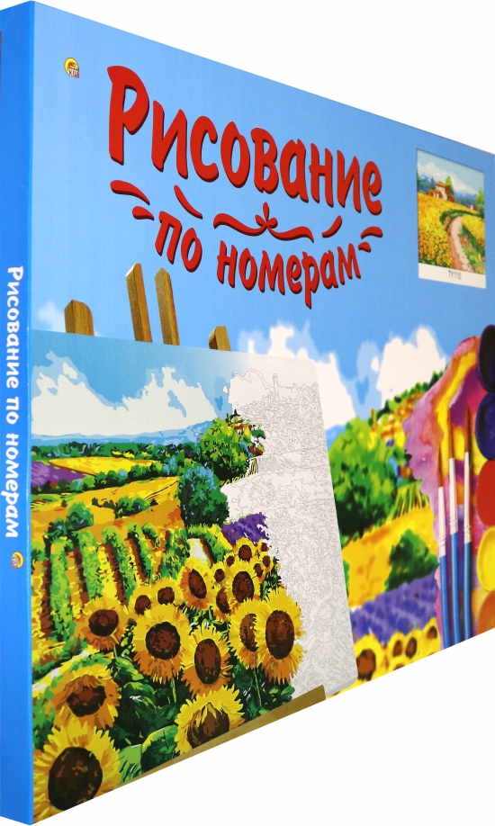 В наборе: холст (40х50 см), акриловые краски, 3 кисти, крепеж, лист для тренировки.