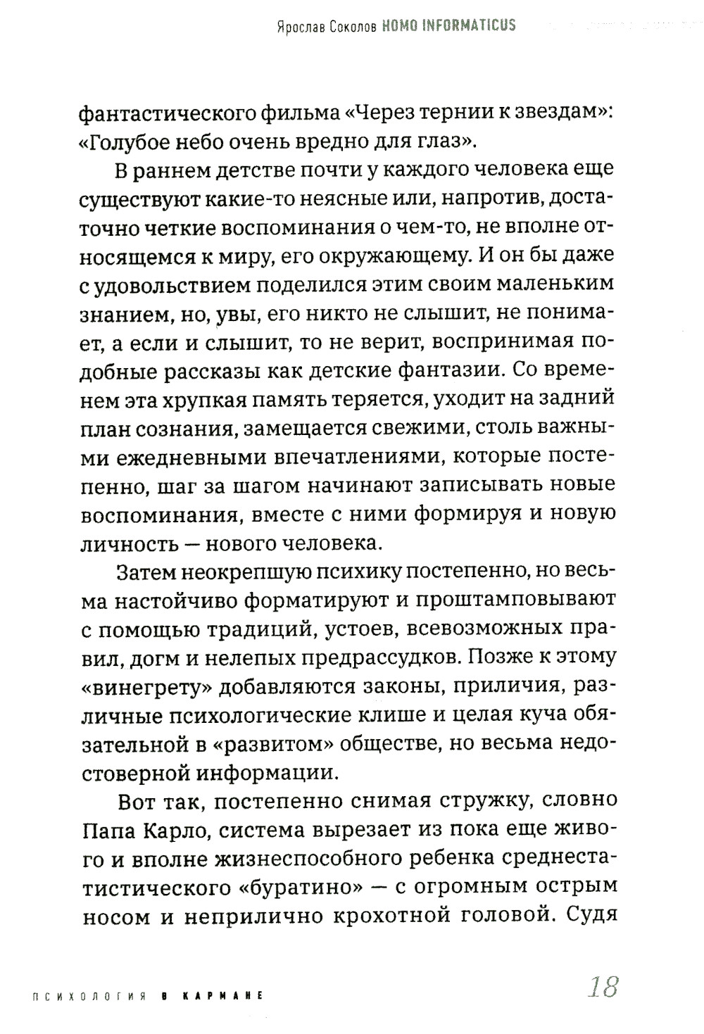 Homo informaticus, человек информационный - новый "вид", формирующийся на нашей планете прямо сейчас. Какие у него особенности, чем он отличается от человека разумного и главное - какова его судьба? На все эти глубокие философские и в то же время прикладные вопросы, касающиеся непосредственно каждого из нас, и предлагает найти ответ автор. Будучи журналистом и научным писателем, имеющим дело с огромным количеством разнообразной информации, он ненавязчиво предоставляет читателю возможность рассмотреть самые разные, даже весьма неожиданные идеи и концепции относительно мироздания, природы человеческого сознания, происходящих в мире закулисных процессов, устройства Вселенной, происхождения человека и свойств "высшего я" - с тем чтобы избавиться от шаблонов мышления, попытаться взглянуть на этот мир непредвзято и найти в окружающем нас сегодня информационном хаосе свои собственные, никем и ничем не навязанные смыслы.| Издательство | Городец |
