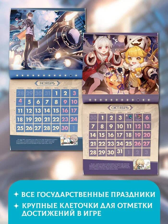 Календарь на 20242024 год по мотивам новой популярной онлайн-игры "Honkai: Star Rail"! Поднимись на борт "Звёздного экспресса" с любимыми героями, в компании которых каждый день будет наполнен приключениями, весельем и новыми открытиями! В календаре отмечены все государственные праздники. А ещё в крупных клеточках календаря можно отмечать свои достижения в игре и памятные даты.| Издательство | ИЗДАТЕЛЬСТВО "АСТ" |