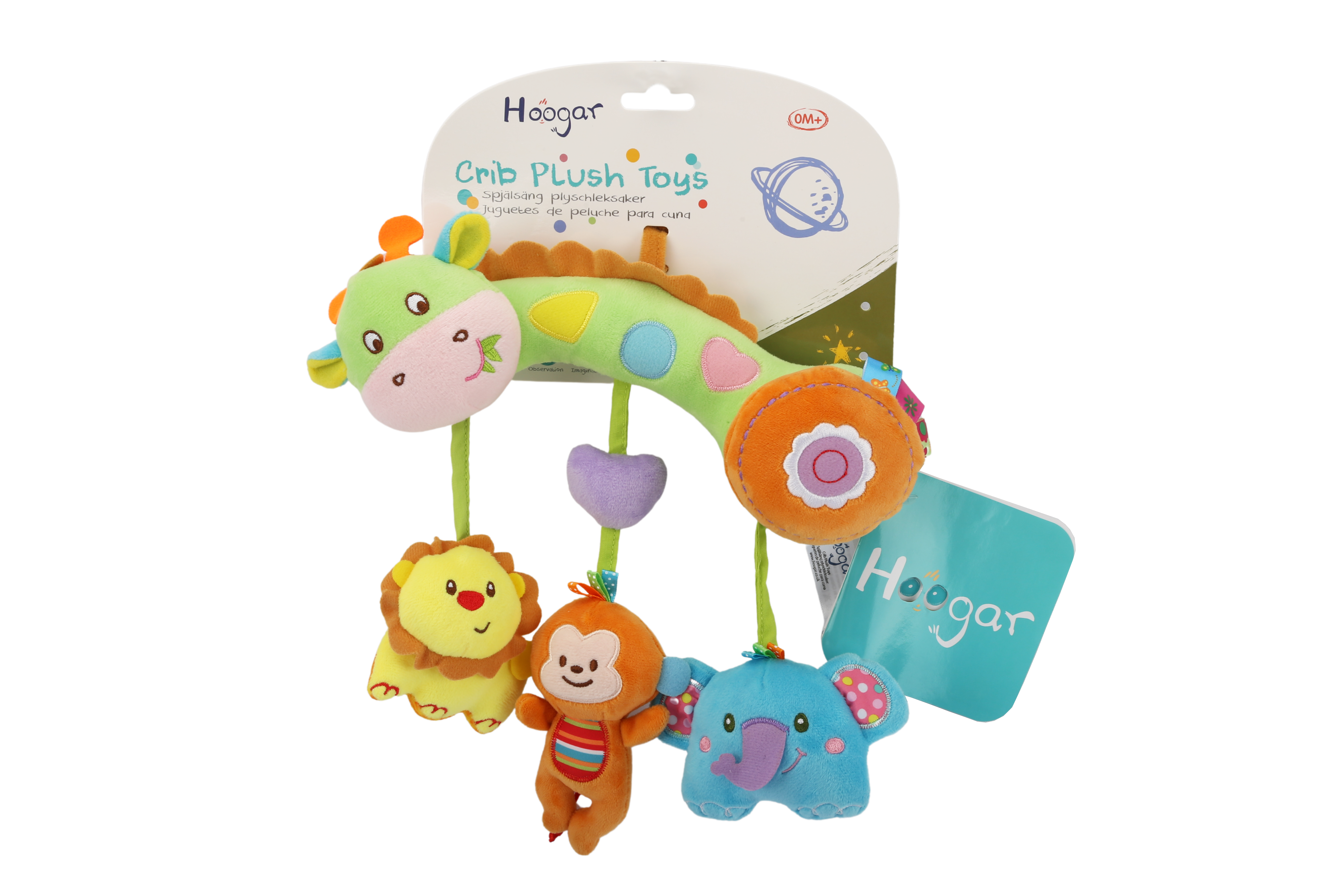 Игрушка-погремушка, которую можно повесить на коляску или кроватку. Пищащая, с шуршащими элементами, с зеркальцем. 100% полиэстер. Размеры 32 х 25 х 7 см