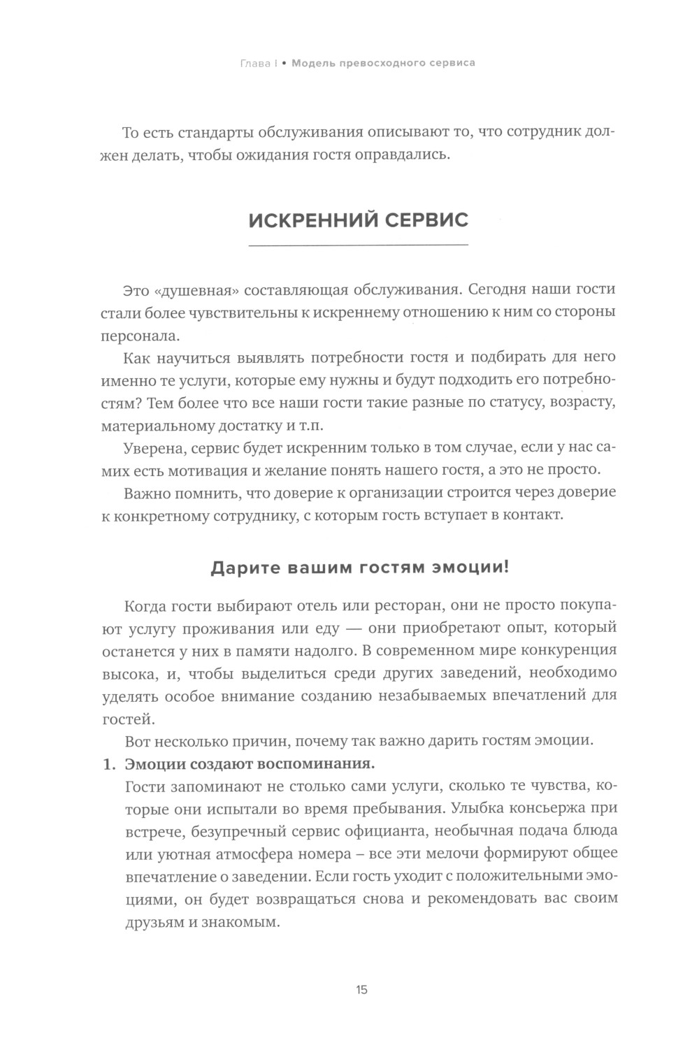 Уровень требований к сервису у гостей отелей и ресторанов постоянно растет. Вместе с этим повышаются и стандарты обслуживания. Книга Галины Анохиной, эксперта-практика в ресторанной и гостиничной индустрии с более чем 20-летним опытом работы в лучших отелях и ресторанах, - это уникальный учебник по организации высококлассного обслуживания, практическое руководство по повышению качества услуг в сфере гостеприимства. В нем детально и наглядно описываются все аспекты и нюансы построения превосходного сервиса: гостеориентированность, стандарты и операционные процедуры и их поэтапное внедрение, правила разрешения конфликтных ситуаций с гостями и работа с жалобами, особенности обслуживания VIP-клиентов, основы персонифицированного сервиса, методы повышения лояльности гостей и эффективности сотрудников. Особенность книги - наличие конкретных примеров и практических кейсов по базовым стандартам обслуживания.| Издательство | Ресторанные ведомости |