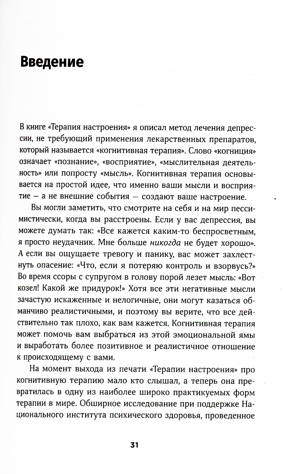 Вас охватывает беспокойство еще до того, как вы откроете ленту новостей? А может быть, вам трудно принимать решения и все валится из рук, хотя день только начался? Вы хотите узнать, как не сойти с ума от тревожности, выбраться из эмоциональной ямы и сохранить психологическое здоровье? Ответы вы найдете в книге психотерапевта Дэвида Бернса, автора международных бестселлеров «Терапия настроения» и «Терапия беспокойства». «Хорошее настроение» - полное руководство для тех, кто хочет своими силами победить депрессию и тревожность, перестать прокрастинировать, наладить общение с близкими, а также научиться противостоять другим негативным эмоциональным состояниям. Автор рассказывает о наиболее эффективных приемах из арсенала когнитивно-поведенческой терапии, которые описал в предыдущих книгах, и рекомендует не пренебрегать ими, чтобы получить максимум пользы от чтения.| Издательство | Альпина Паблишер |