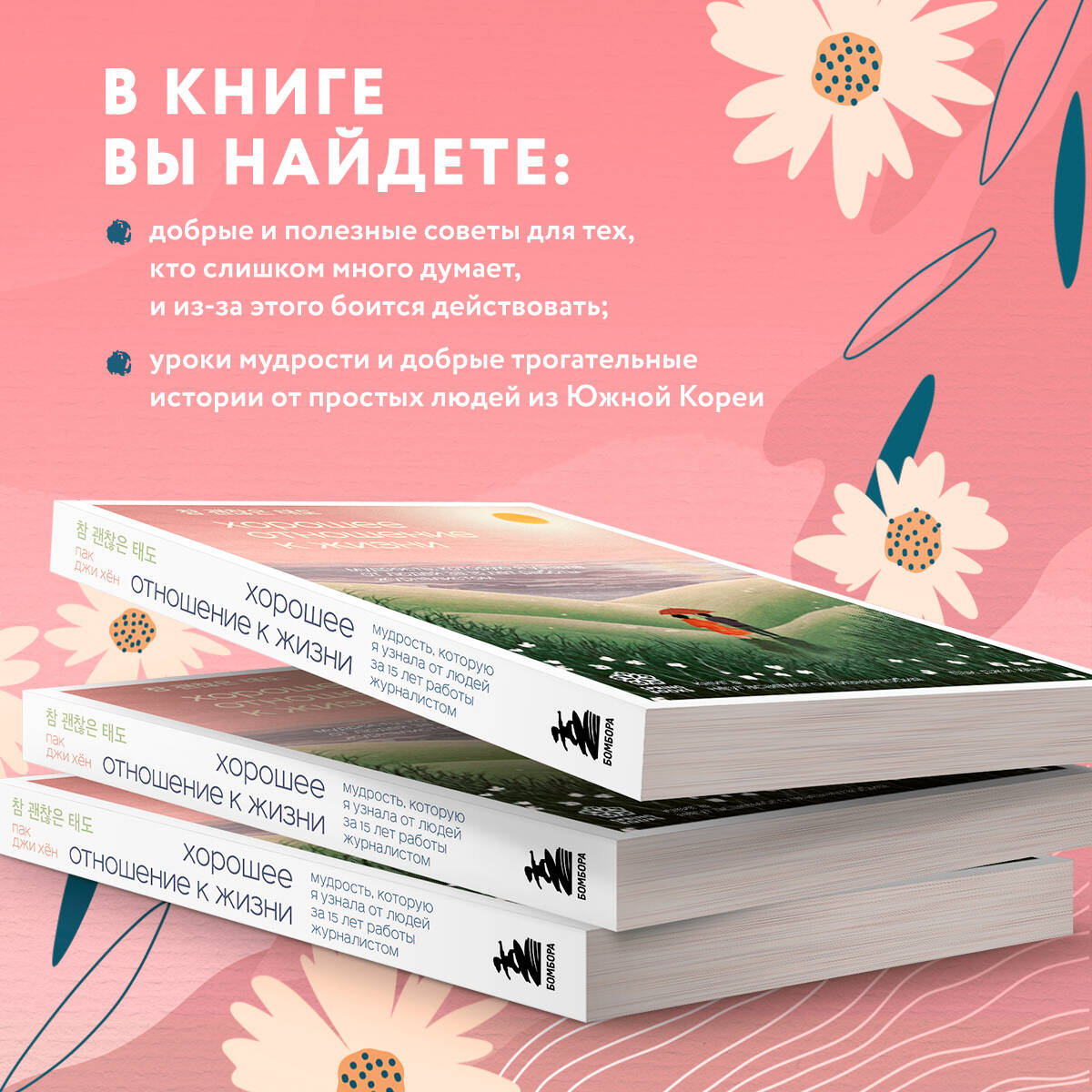Эта книга - сборник жизненных историй, которые Пак Джи Хён узнала от многочисленных людей, встретившихся ей в течение 15 лет работы режиссером документальных фильмов для телепрограммы «3 дня». Каждая история - кусочек жизни героев ее фильмов: детей и стариков, матерей и отцов, обычных людей и работников, знаменитостей и президентов. Слушая их искренние рассказы, автор находила ответы на жизненные вопросы, постигала жизненную мудрость и получала утешение. Наблюдая за жизнью различных людей, она многому научилась и осознала, сколько непонимания и предрассудков у нее было, пока она жила в своем ограниченном мире. Здесь собраны истории, которыми Джи Хён бы хотела поделиться с людьми, желающими прожить свою жизнь без сожалений. Так, в книге можно найти ответы на вопросы: «Какое отношение к жизни нужно иметь, чтобы жить полноценно?», «Что в конечном счете дает нам силы жить?», «Как встретить свою старость?» и др. Автор надеется, что, прочитав хотя бы одну из историй, рассказанных в этой книге, читатели смогут приободриться, когда будут чувствовать себя одинокими, потерянными, чувствовать к себе ненависть или нуждаться в утешении и поддержке. ЦИТАТЫ: «Жизнь идет своим чередом, несмотря на все испытания и невзгоды. И сил придает желание еще раз увидеть улыбающиеся лица любимых людей. Так продолжается жизнь». «Можно быть хорошим для других, но оказаться скрягой, когда дело касается заботы о своем сердце. Почему мы умеем говорить: "Ты хорошо справляешься" и "Держись" другим, но не можем сказать этого самим себе?» «И хотя важно делать свою работу хорошо, я поняла, что не следует упускать при этом из виду людей. Наблюдая за теми, кто увлечен своим делом, заботится о близких, умеет быть благодарным даже за мелочи, я подумала, что и мне следует жить так же». «После того как я начала вести общественную жизнь, то поняла, насколько сложно встретить людей, которые будут ценить тебя такой, какая ты есть, даже без нормальной визитки». «Настоящее прощение направлено не на человека, который причинил вам боль, оно не освобождает его от содеянного. Как сказал Чан Доник: "Храня это в своем сердце, я делаю хуже самому себе", то есть прощение - это выбор в собственную пользу. Вот почему мудрый человек прощает, хотя и не забывает». «Меня учили, что люди должны жить, доверяя и полагаясь друг на друга, но, как ни странно, когда я выросла, стало больше причин остерегаться незнакомцев». «Самое жестокое, что человек может сделать по отношению к другому - это оставить его разговаривать с самим собой». «Если кто-то не делает так, как нам нужно, мы считаем, что человек стал нас любить меньше. Однако, очевидно, что никто не будет знать о наших желаниях, если об этом не сказать». «"После горя приходит радость, но затем место радости занимает печаль" - это выражение означает, что горечь сменяет сладость, а после радости приходит грусть. В жизни, когда заканчиваются трудности, наступают хорошие времена, но счастье заканчивается, и нас одолевает печаль. Не нужно слишком уж разочаровываться в мирских делах, но и чрезмерно зазнаваться тоже не стоит».| Издательство | ООО "Издательство "Эксмо" |