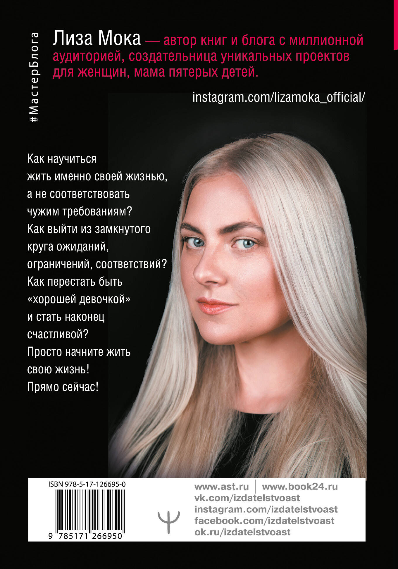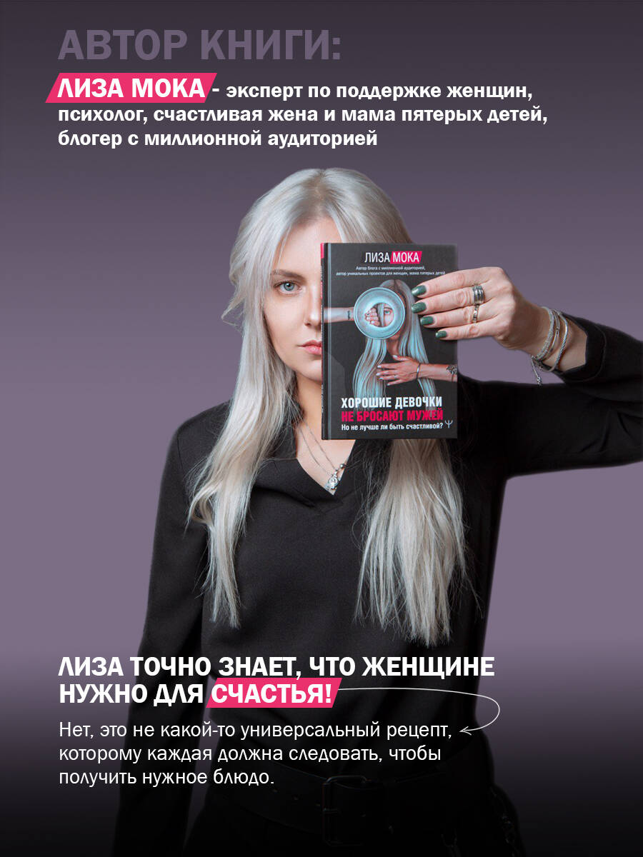 Лиза Мока - счастливая жена и мама пятерых детей, блогер с миллионной аудиторией, и она точно знает, что женщине нужно для счастья! Нет, это не какой-то универсальный рецепт, которому каждая должна следовать, чтобы получить нужное блюдо. Счастье - в индивидуальности. Но под давлением семьи, мужа, общества женщины зачастую уже не могут самостоятельно проложить тропинку к своему счастью. Лиза Мока это исправит! В этой книге автор поднимает один из самых главных вопросов: как научиться жить именно своей жизнью, а не соответствовать чужим требованиям и шаблонам, выйти из замкнутого круга ожиданий, ограничений, соответствий? Как перестать быть "хорошей девочкой" и стать наконец счастливой? Просто начните жить свою жизнь! Прямо сейчас!| Издательство | ИЗДАТЕЛЬСТВО "АСТ" |