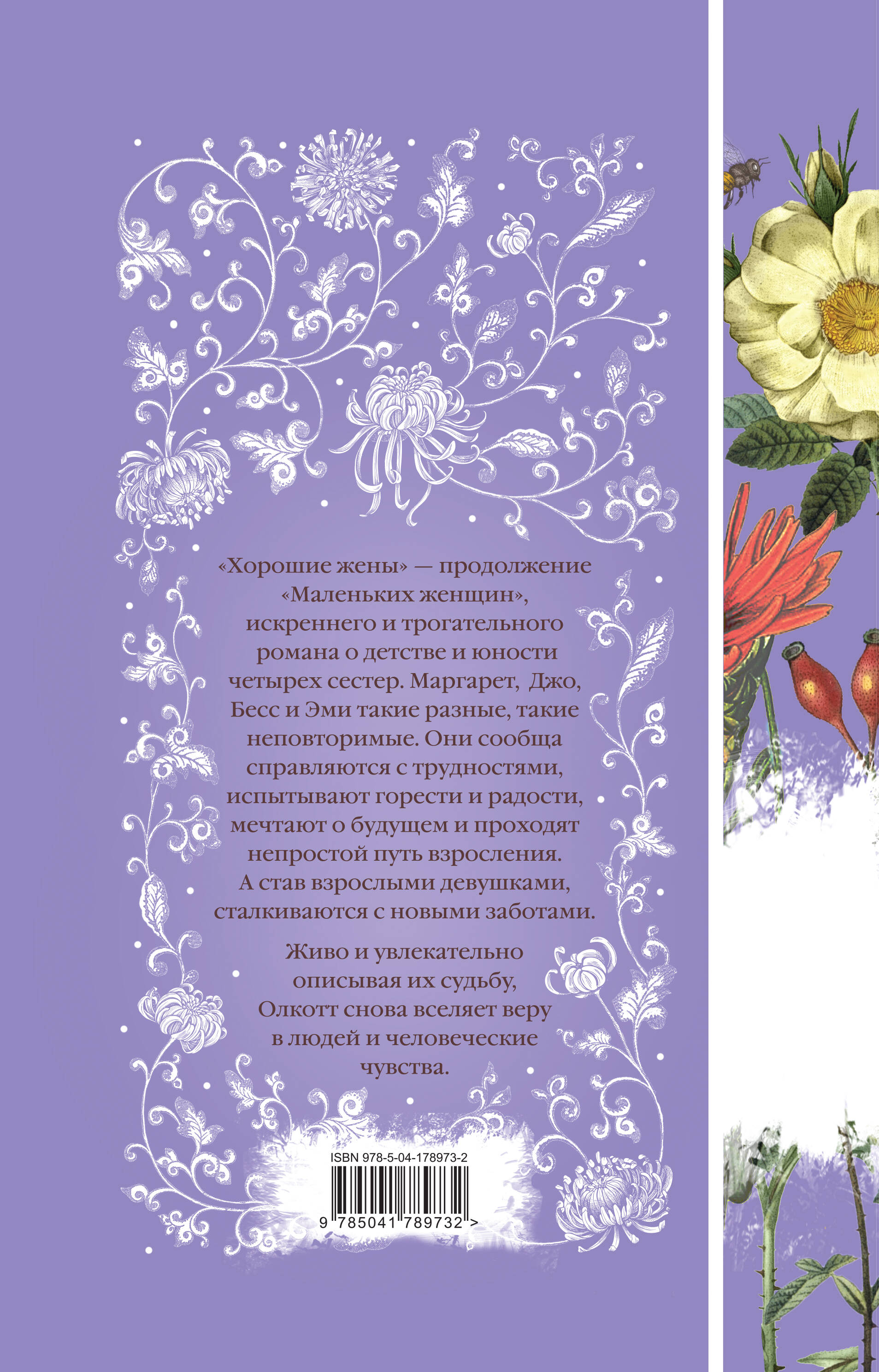 Старый друг лучше новых двух. С последней страницей «Маленьких женщин» история семейства Марч не закончилась. Мег, Джо, Бесс и Эми расцвели и из «маленьких» женщин превратились во взрослых девушек. Им предстоит выпорхнуть из семейного гнездышка и выбрать жизненный путь. Кто-то будет искать свое счастье, а кто-то - себя. Их ждут новые заботы, радостные моменты, романтические встречи и горечь утрат. Воздушные замки, построенные в детстве, начинают рушиться. Взрослый мир готовит новые испытания. Однако сестры не готовы терять надежду на лучшее. Станут ли они хорошими женами, как обещает название книги? Эта светлая книга вызывает улыбку, отвлекает от бед и погружает в атмосферу уюта и тепла. Роман способен поднять настроение читателям любого возраста. История семейства Марч была неоднократно перенесена на широкие экраны. Последняя экранизация 2019 года со звездами мирового масштаба в главных ролях покорила сердца зрителей и кинокритиков, а также была номинирована на «Оскар» в шести категориях и получила награду за «Лучший дизайн костюмов».