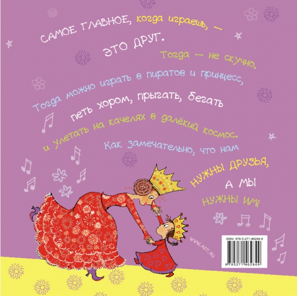 Самое главное, когда играешь, - это друг. Тогда - не скучно. Тогда можно играть в пиратов и принцесс, петь хором, прыгать, бегать и улетать на качелях в далекий космос. Как замечательно, что нам нужны друзья, а мы нужны им.