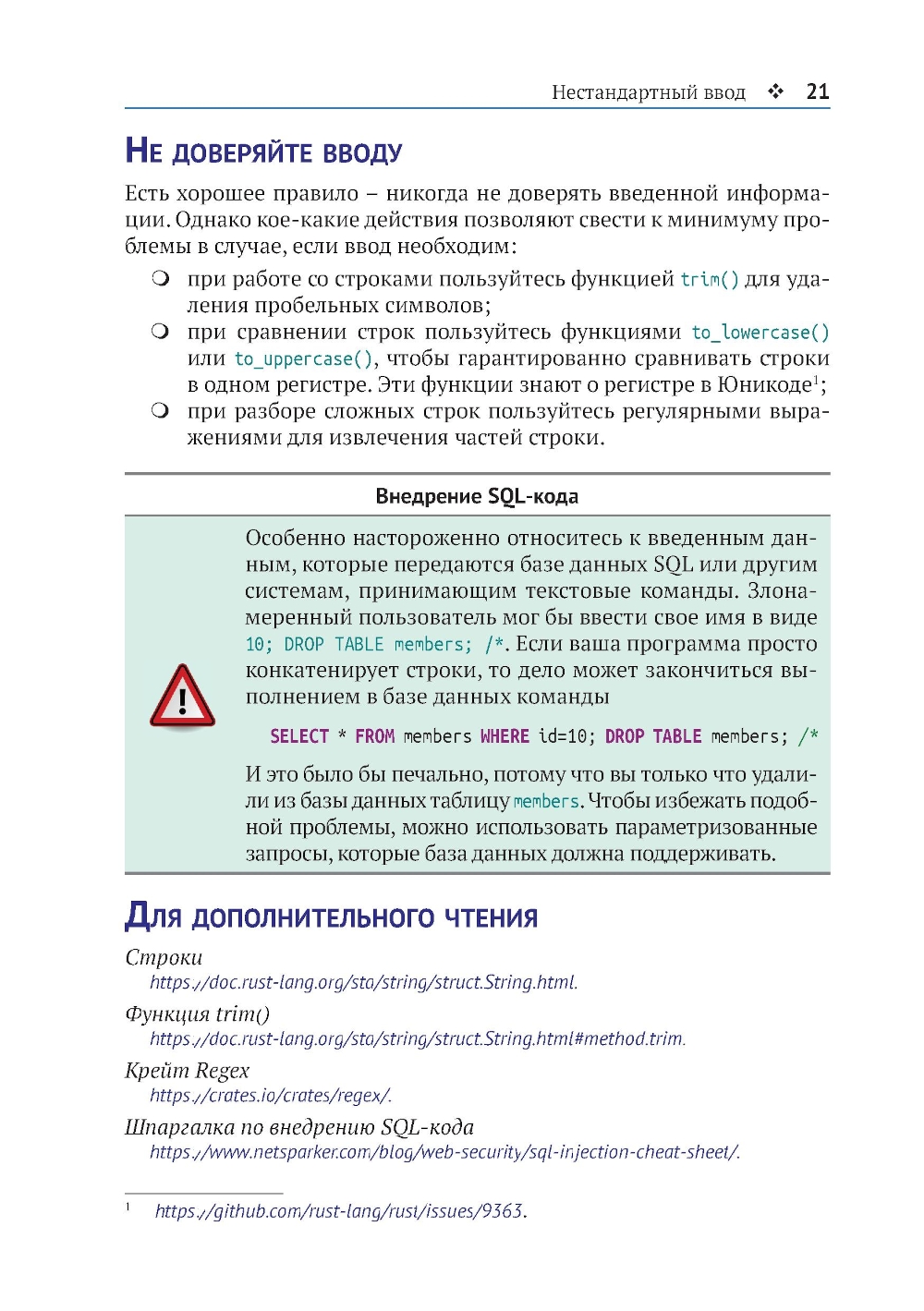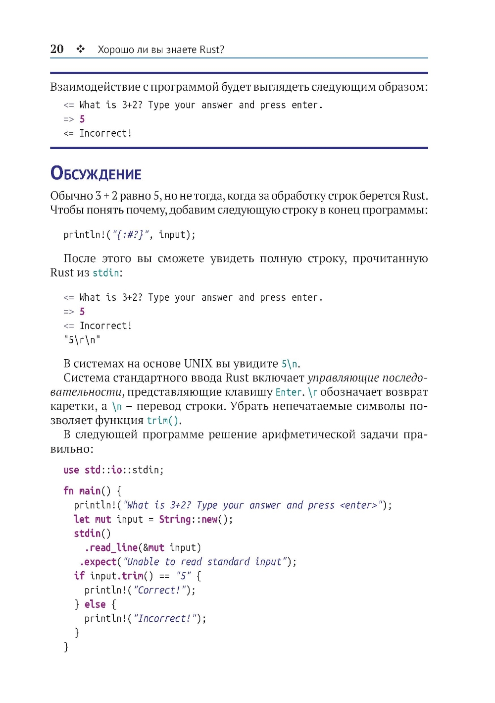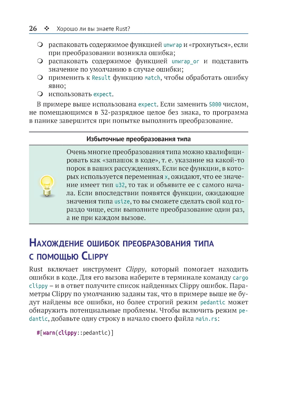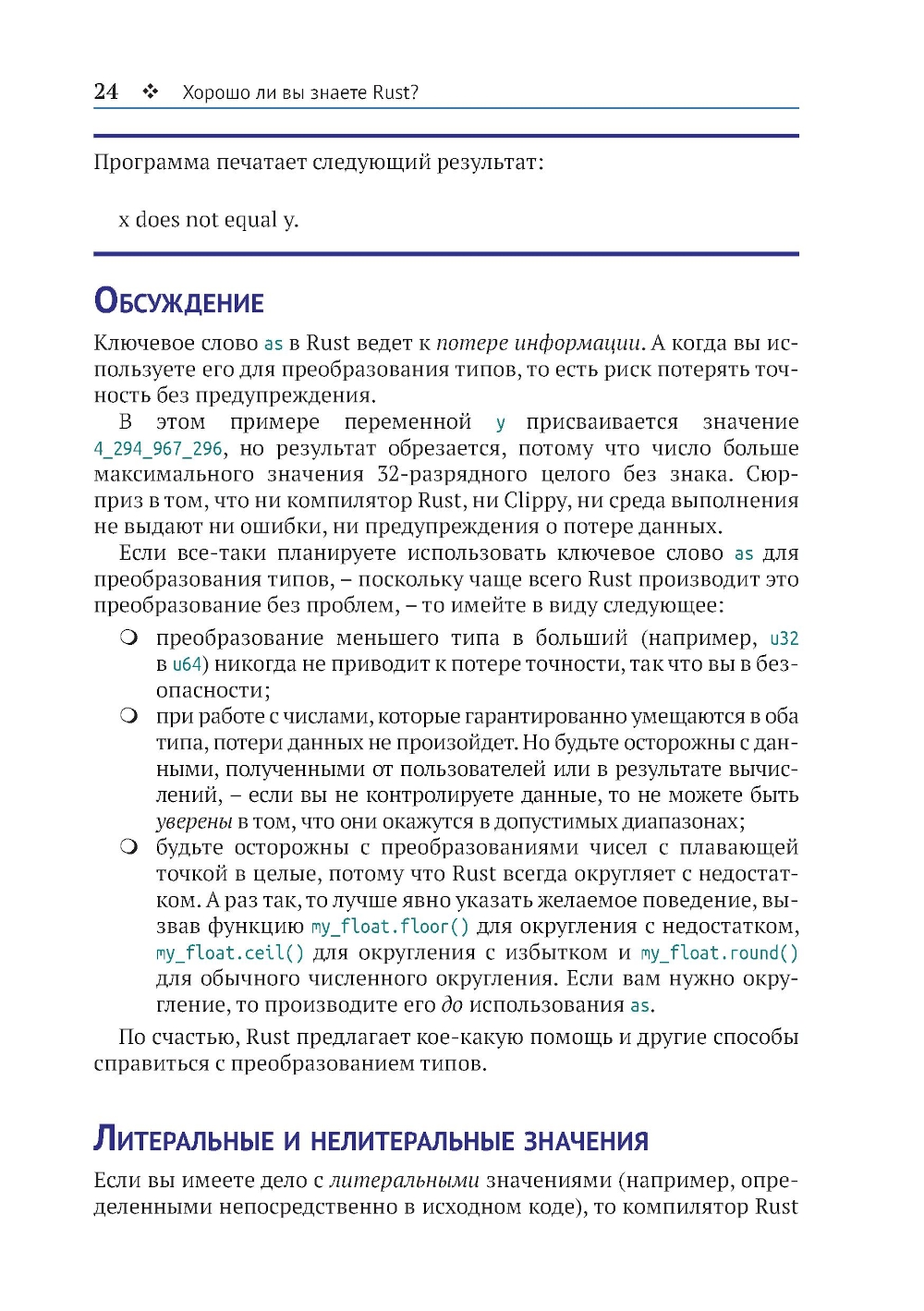 Rust - последовательный язык, который старается уберечь программиста от сюрпризов. Но, как и во всех языках, в нем есть свои странности. Подборка нестандартных задач в этой книге поможет вам узнать насколько хорошо вы знаете Rust. Многие задачи взяты из собственного опыта автора. В основе других лежат вопросы, часто задаваемые в форумах программистов. Скорее приступайте к решению задач, охватывающих числа и текст, затенение, работу с памятью и многое другое. Попробуйте догадаться, почему программа в задаче не компилируется, дает неожиданный результат или завершается с сообщением об ошибке. Выполните код и сравните свои предположения с ответом в книге. Подробные объяснения раскроют вам суть проблемы и помогут избежать ошибок в будущем. Вы узнаете, как аналогичные проблемы могут повлиять на работу ваших собственных программ, даже находящихся в эксплуатации. Готовы получить уникальный опыт? Тогда прочистите мозги и приступайте к делу!| Издательство | ДМК Пресс |
