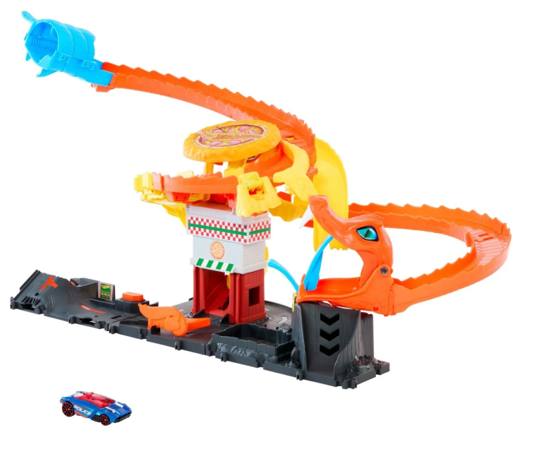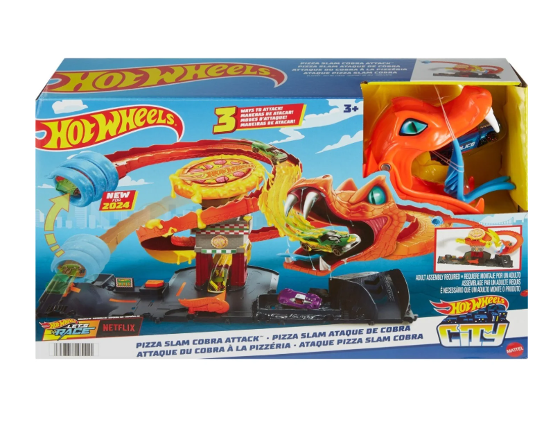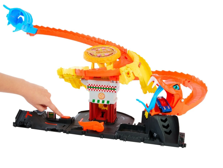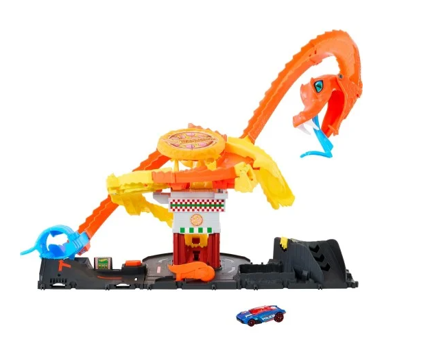 Спасите городскую пиццерию Hot Wheels от огромной кобры, которая захватила ее!