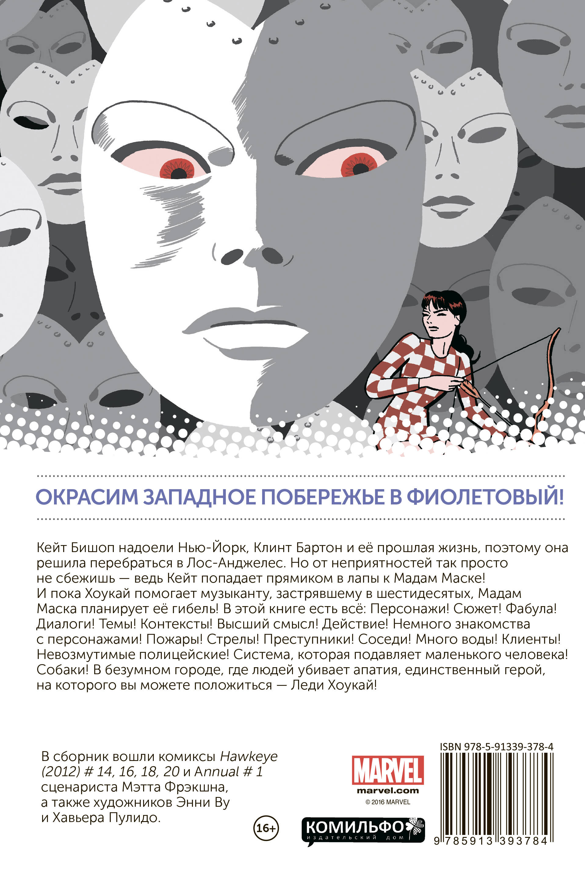 Кейт Бишоп надоели Нью-Йорк, Клинт Бартон и её прошлая жизнь, поэтому она решила перебраться в Лос-Анджелес. Но от неприятностей так просто не сбежишь - ведь Кейт попадает прямиком в лапы к Мадам Маске! И пока Хоукай помогает музыканту, застрявшему в шестидесятых, Мадам Маска планирует её гибель! В этой книге есть всё: Персонажи! Сюжет! Фабула! Диалоги! Темы! Контексты! Высший смысл! Действие! Немного знакомства с персонажами! Пожары! Стрелы! Преступники! Соседи! Много воды! Клиенты! Невозмутимые полицейские! Система, которая подавляет маленького человека! Собаки! В безумном городе, где людей убивает апатия, единственный герой, на которого вы можете положиться - Леди Хоукай!| Издательство | Комильфо ООО |