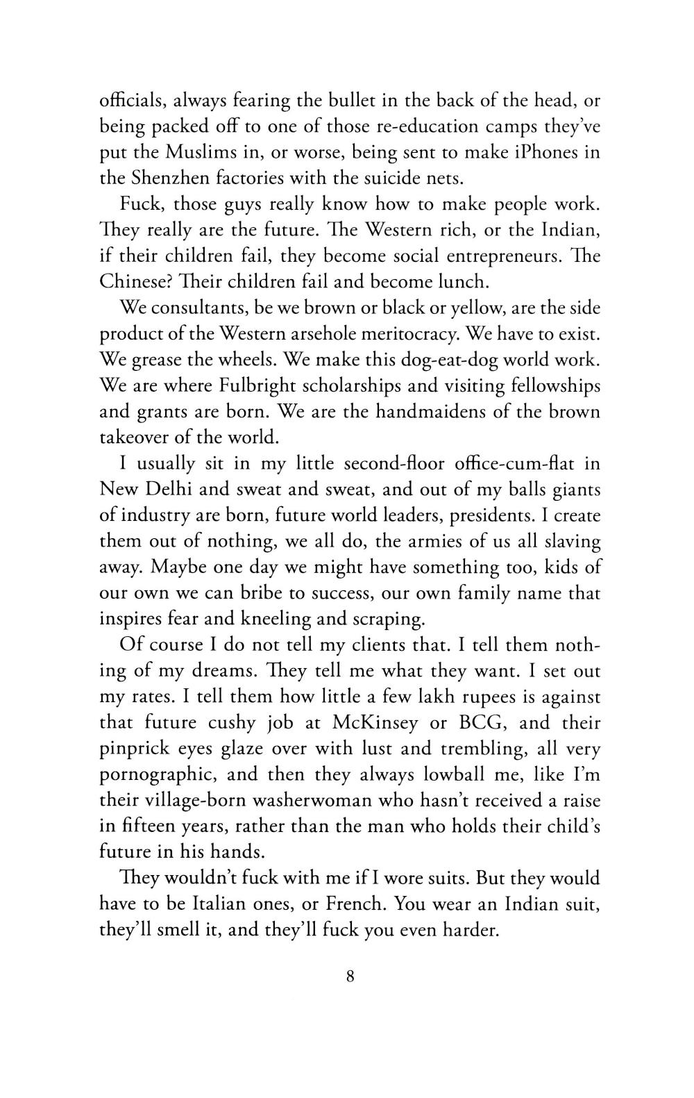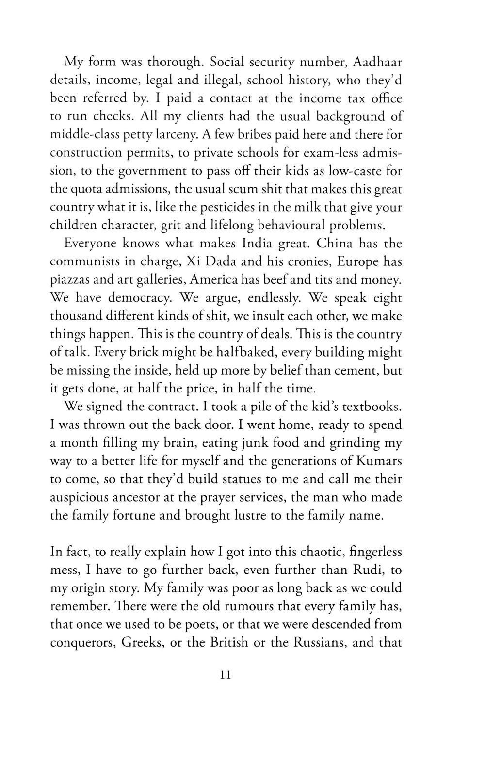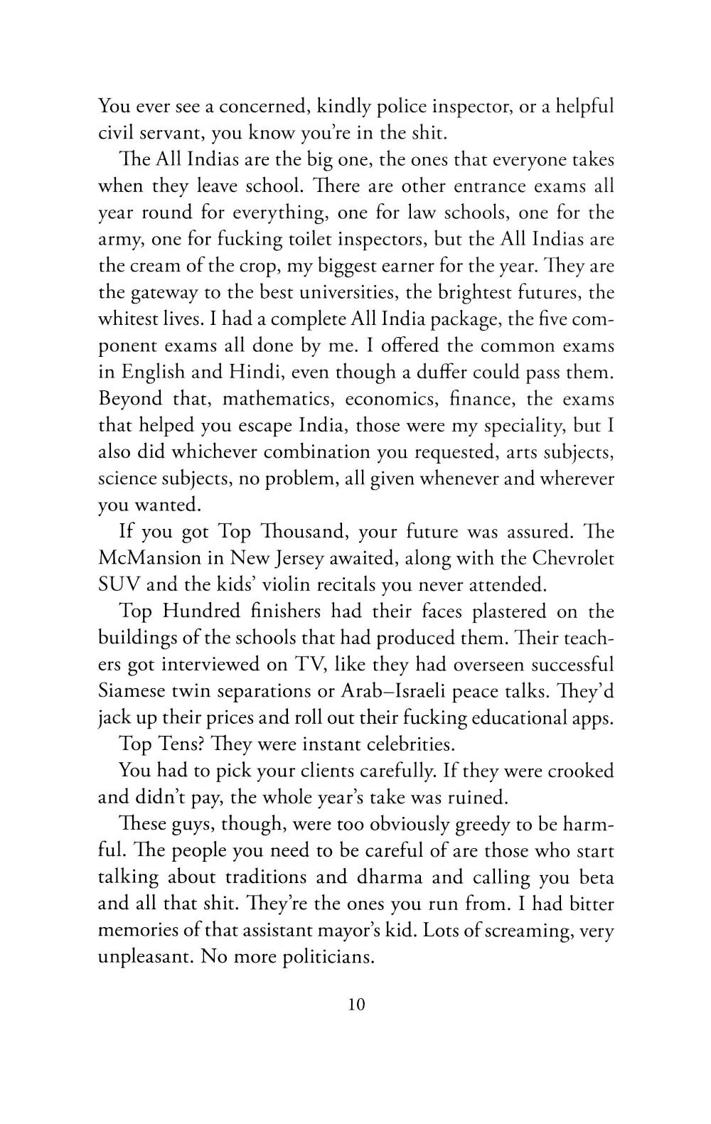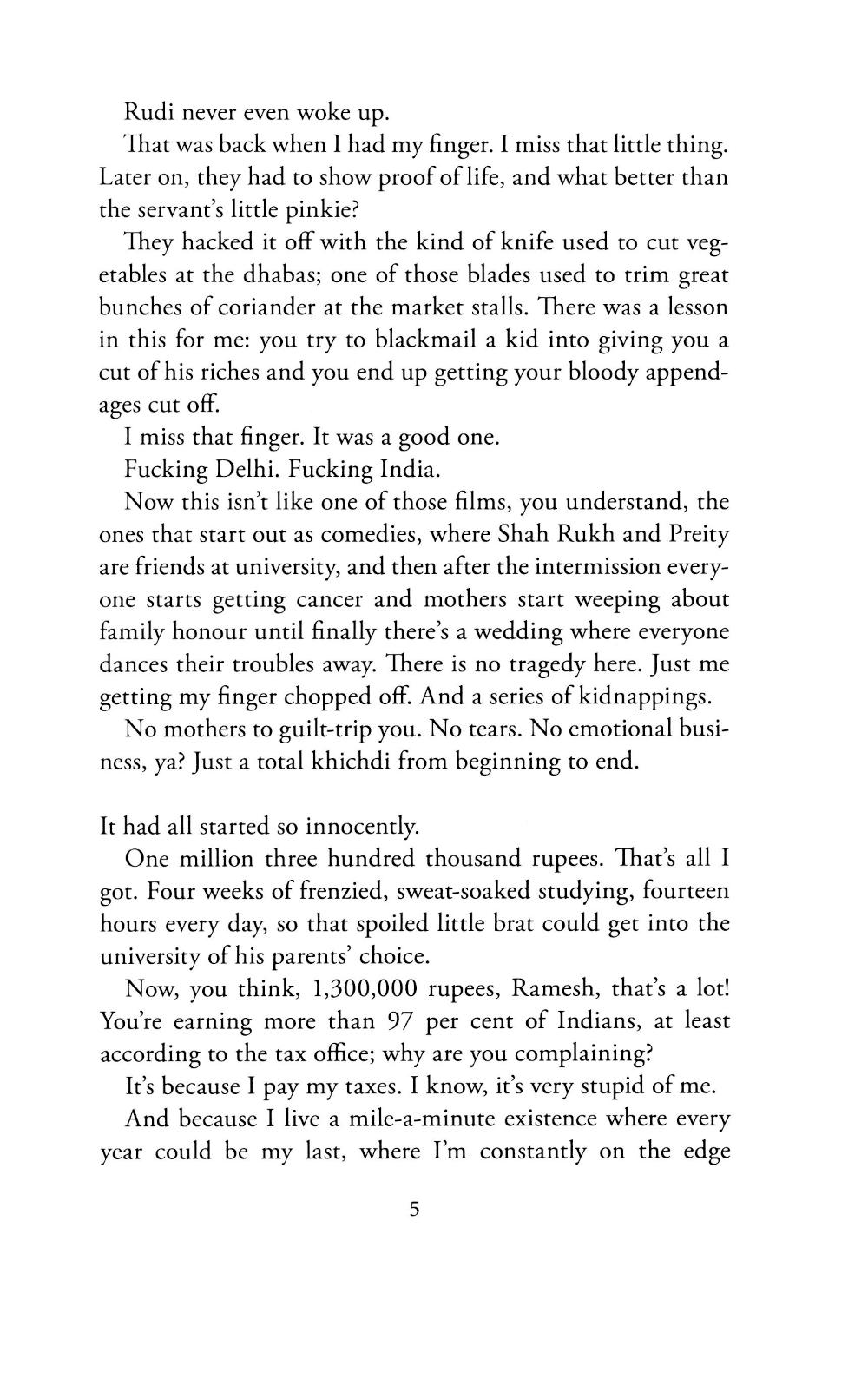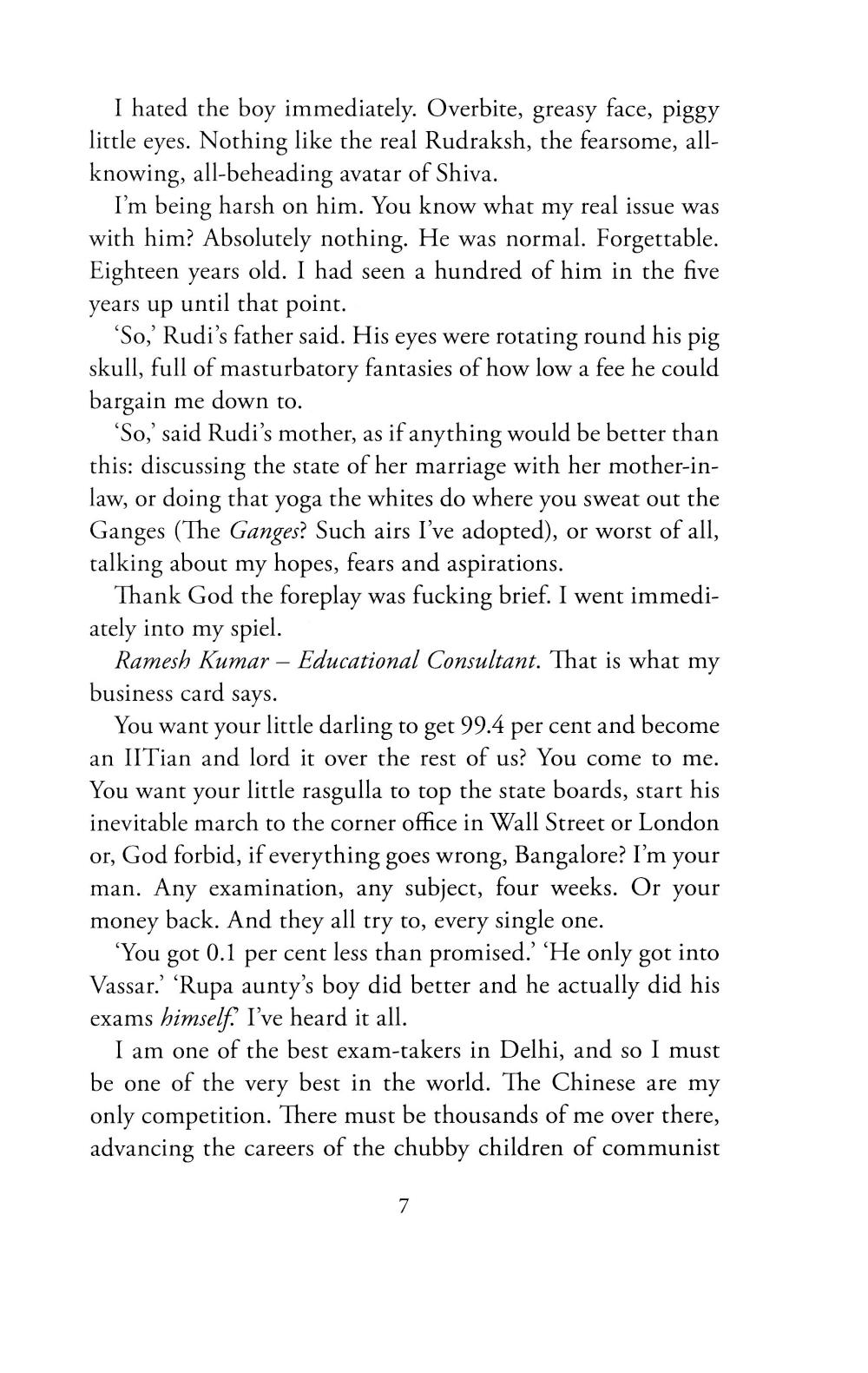 If you're fat and Indian, you're rich; if you're fat and poor, you're lying. It's only the West where the rich are thin and vegan and moral... Ramesh Kumar grew up deprived and unloved, working on his father's tea stall in the Old City of Delhi. Now, brilliant but poor, he makes a lucrative living taking tests for the sons of India's elite. When one of his clients, the sweet but hapless eighteen-year-old Rudi Saxena, places first in the All Indias, the national university entrance exams, Ramesh sees an unmissable opportunity. Cashing in on Rudi's newfound celebrity, all goes well for both boys for a while. But Rudi's role on a game show leads to unexpected love, blackmail and, finally, a dangerous kidnapping. As Ramesh leads Rudi through a maze of crimes both large and small, their dizzying journey reveals an India in all its complexity, beauty, and squalor, moving from the bottom rungs to the circles inhabited by the ultra-rich and everywhere in between.| Издательство | Little, Brown and Company |