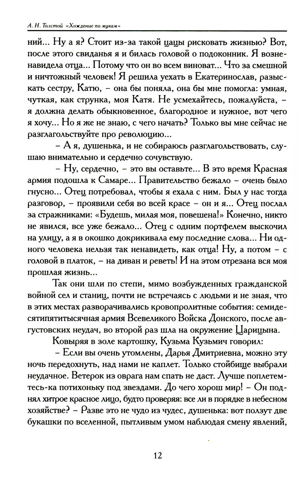 «Хождение по мукам» - уникальная по масштабности трилогия А. Н. Толстого, ярко и полно описывающая самые сложные периоды истории России начала XX века накануне, во время и после революционных событий, включая Первую мировую и гражданские войны. А. Н. Толстой писал «Хождение по мукам» более 20 лет. Трилогия стала любимейшей книгой миллионов читателей, вошла в золотой фонд мировой литературы, была неоднократно экранизирована, что говорит о неизменной актуальности произведения. В основе трилогии - живые человеческие судьбы на фоне масштабных исторических событий. Первая книга эпопеи «Сестры» - главные героини романа. Катя и Даша Булавины, находятся в поисках личного счастья, смысла жизни и ответа на главные общечеловеческие вопросы, но вихри Мировой войны и двух революций разносят главных героев по разным уголкам страны. Вторая книга трилогии «Хождение по мукам» - «Восемнадцатый год» описывает грандиозные события гражданской войны. История показана в преломлении живых человеческих судеб: Катя и Даша, Рощин и Телегин честны и отзывчивы, уповают на всемогущую силу любви в масштабе конкретной души и всеобъемлющего чувства к родине. Пути главных героев не раз пересекаются и вновь расходятся, под неумолимым напором бурного времени. Третья книга «Хмурое утро» была дописана в первый день Великой Отечественной войны. В романе перед читателем проходят картины боев, побед и поражений Красной армии и Белого движения. На страницах романа действуют все значительные исторические фигуры того времени. Но главными героями остаются обычные люди, сквозь все испытания они проносят любовь друг к другу, даже оказываясь по разные стороны баррикад.| Издательство | ИД Верже |