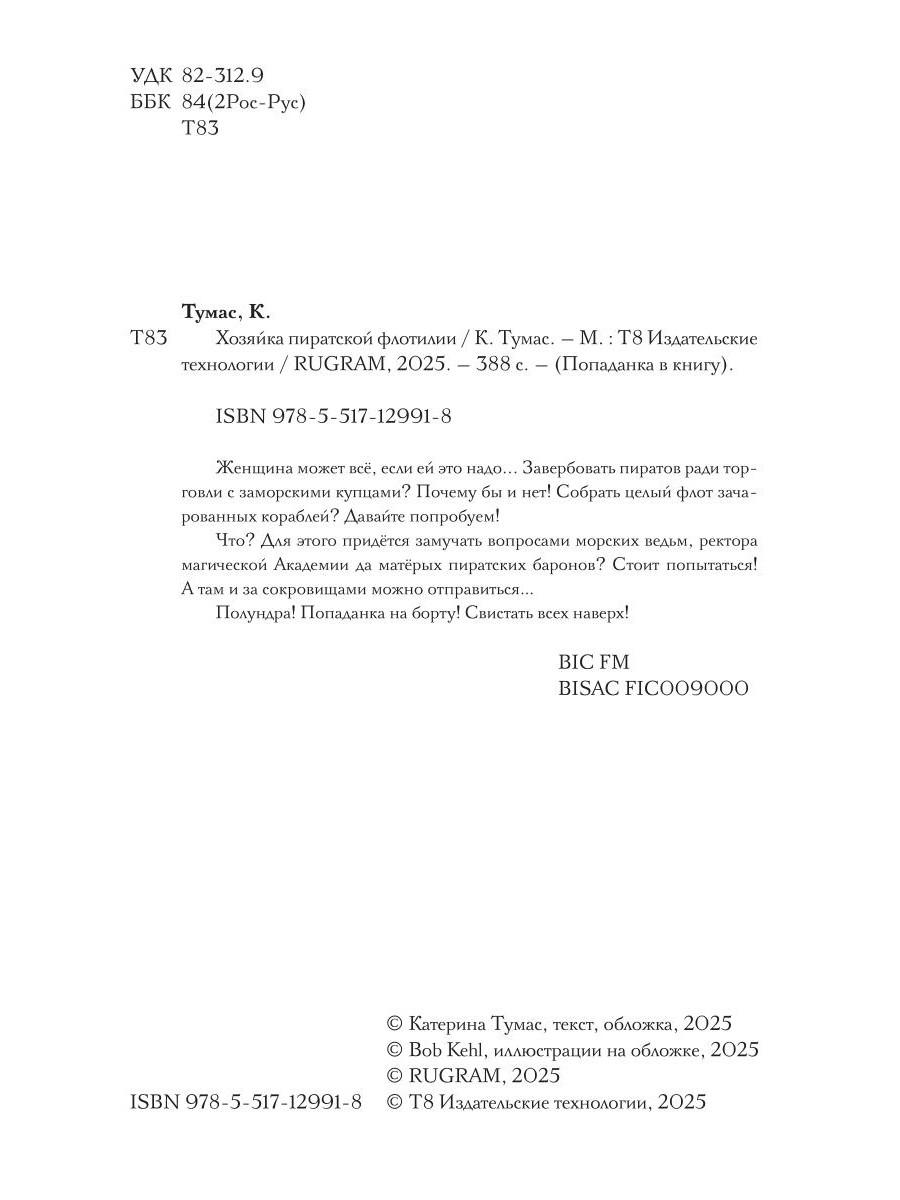 Женщина может всё, если ей это надо... Завербовать пиратов ради торговли с заморскими купцами? Почему бы и нет! Собрать целый флот зачарованных кораблей? Давайте попробуем! Что? Для этого придётся замучать вопросами морских ведьм, ректора магической Академии да матёрых пиратских баронов? Стоит попытаться! А там и за сокровищами можно отправиться… Полундра! Попаданка на борту! Свистать всех наверх!| Издательство | Т8 RUGRAM |