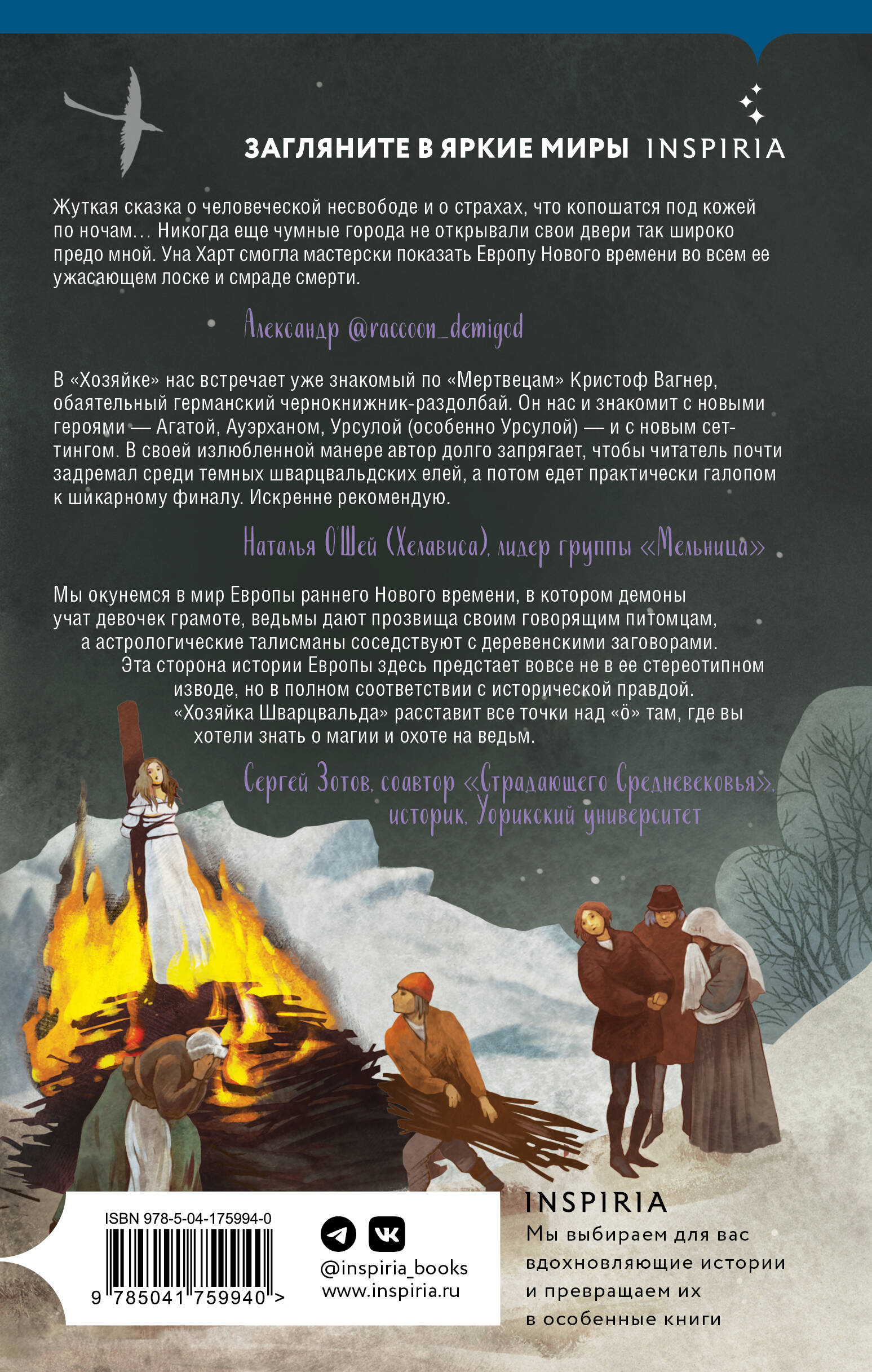 Германия, 21 декабря 1601 года. В городе Оффенбурге народ собирается на площади в предвкушении казни. Эльзу Гвиннер, жену пекаря, признали виновной в колдовстве, и теперь ее ждет костер. Но что будет с ее семилетней дочерью, из-за признания которой осудили Эльзу? Отправится ли она тоже в огонь? Нет, если ее заметил Кристоф Вагнер, ученик доктора Фауста, колдун, продавший душу дьяволу. Он страстно желает передать кому-нибудь драгоценные знания своего учителя. А кто лучше подойдет на эту роль, чем девочка, от которой все отвернулись, малолетняя ведьма и преступница, предавшая свою мать? Новый самостоятельный роман Уны Харт, продолжающий раскрывать вселенную книги «Когда запоют мертвецы». Инквизиция, ведьмы, костры и - реальные демоны, вмешивающиеся в дела людей. Уна Харт с подкупающей скрупулезностью и достоверностью выписывает быт Европы начала 17-го века, показывая его с неожиданной стороны, где магия и договоры с темными силами не сказки и домыслы соседей, а реальность. Читатель встретится не только со знакомыми по книге «Когда запоют мертвецы» персонажами, но и с самим доктором Фаустом, который в последний раз обращается к своему ученику... Книгу дополняет саундтрек, который можно получить по QR-коду, написанный специально для этой истории.