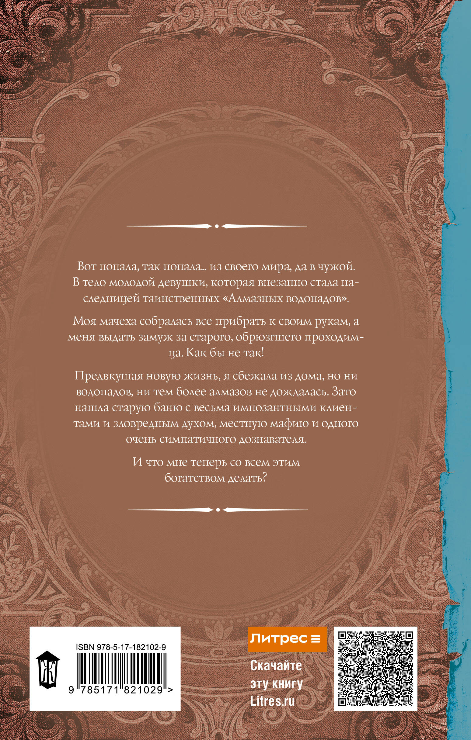 Вот попала, так попала... из своего мира, да в чужой. В тело молодой девушки, которая внезапно стала наследницей таинственных "Алмазных водопадов". Моя мачеха собралась все прибрать к своим рукам, а меня выдать замуж за старого, обрюзгшего проходимца. Как бы не так! Предвкушая новую жизнь, я сбежала из дома, но ни водопадов, ни тем более алмазов не дождалась. Зато нашла старую баню с весьма импозантными клиентами и зловредным духом, местную мафию и одного очень симпатичного дознавателя. И что мне теперь со всем этим богатством делать?| Издательство | Издательство "АСТ" |