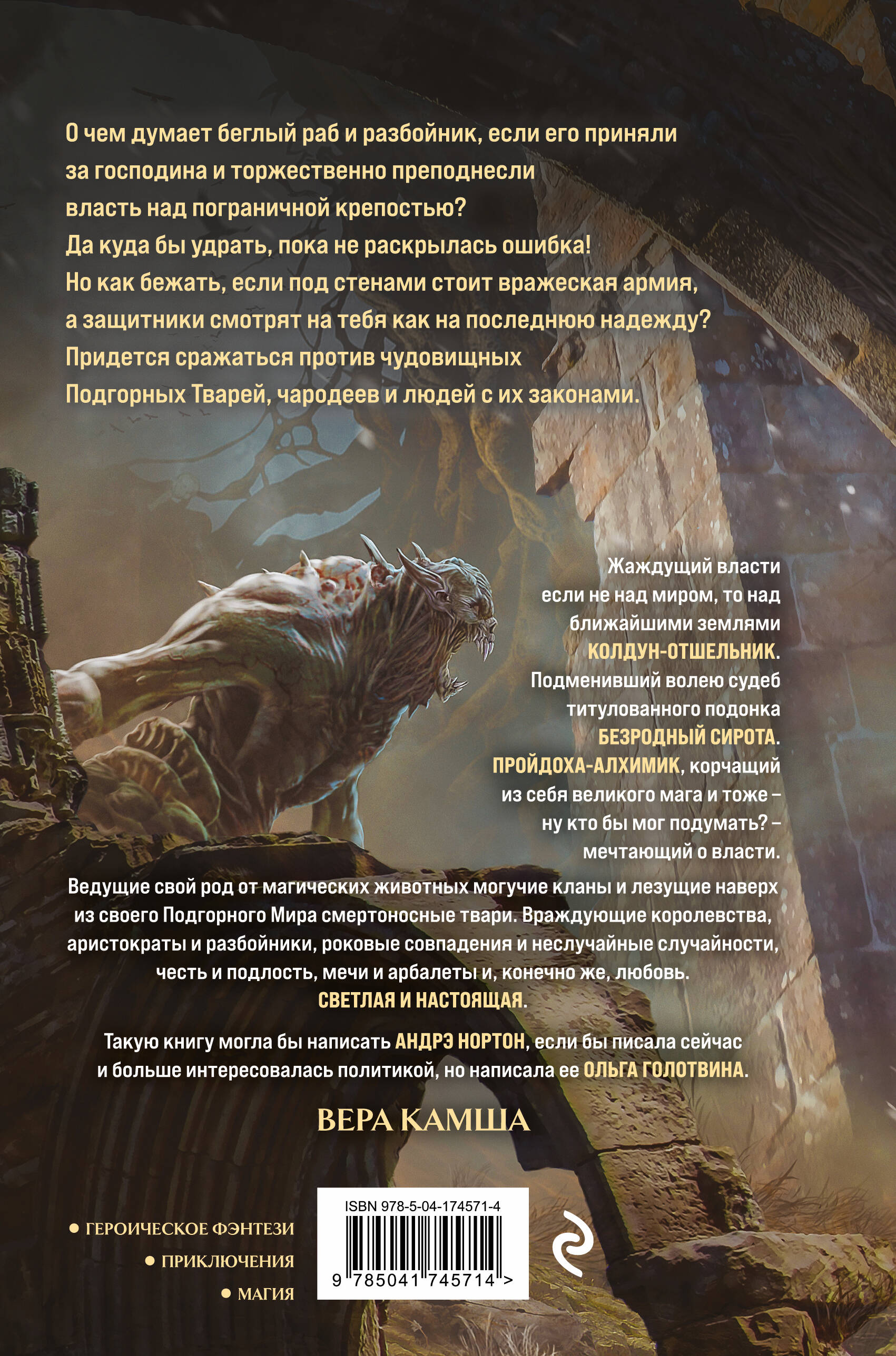 Жаждущий власти если не над миром, то над ближайшими землями колдун-отшельник. Подменивший волею судеб титулованного подонка безродный сирота. Пройдоха-алхимик, корчащий из себя великого мага и тоже - ну кто бы мог подумать? - мечтающий о власти. Ведущие свой род от магических животных могучие кланы и лезущие наверх из своего Подгорного мира смертоносные твари. Враждующие королевства, аристократы и разбойники, роковые совпадения и неслучайные случайности, честь и подлость, мечи и арбалеты, и, конечно же любовь. Светлая и настоящая. Такую книгу могла бы написать Андрэ Нортон, если бы писала сейчас и больше интересовалась политикой, но написала ее Ольга Голотвина. - Вера Камша| Издательство | ООО "Издательство "Эксмо" |