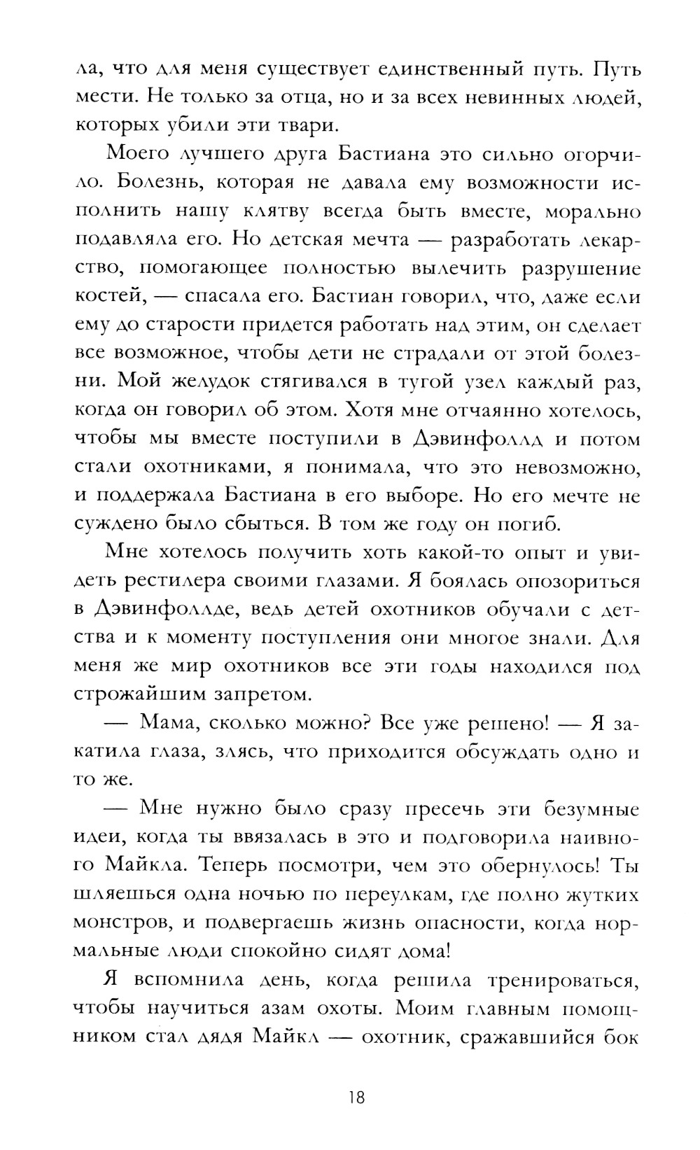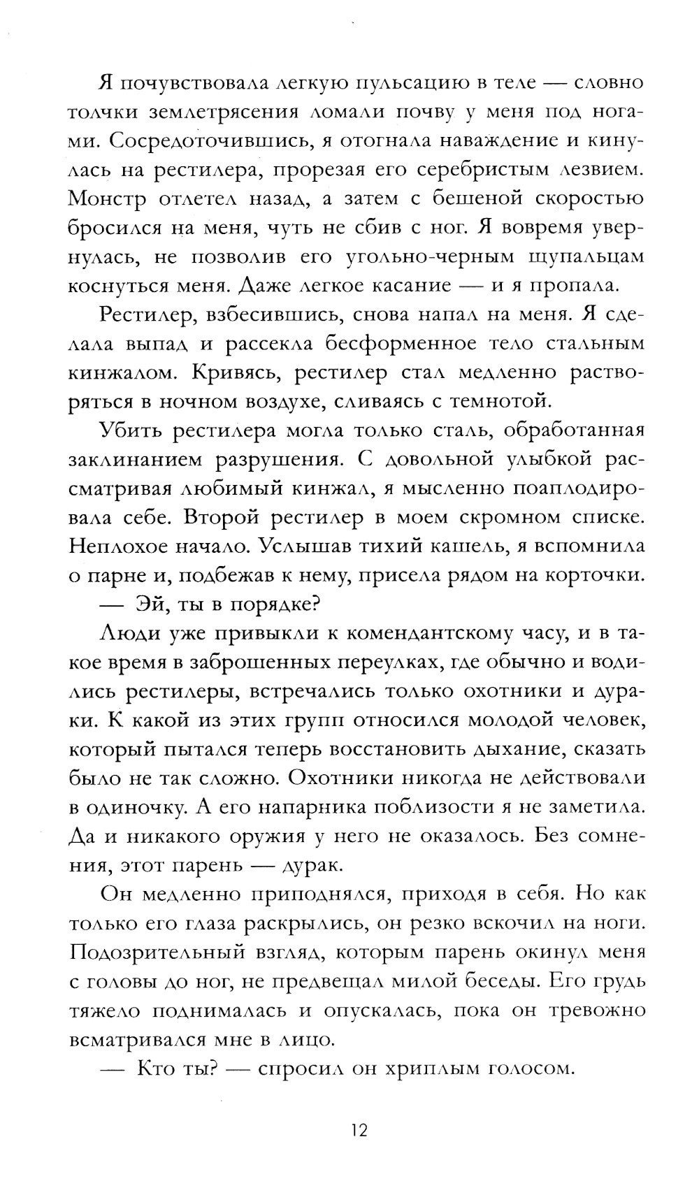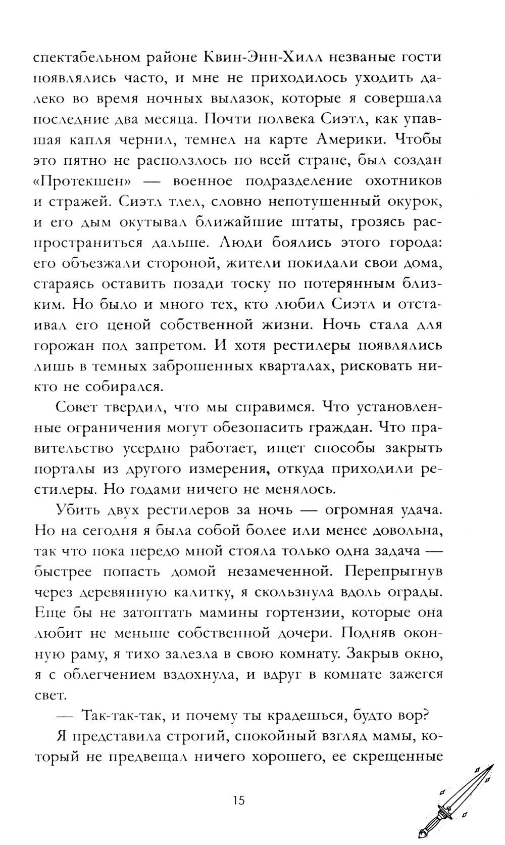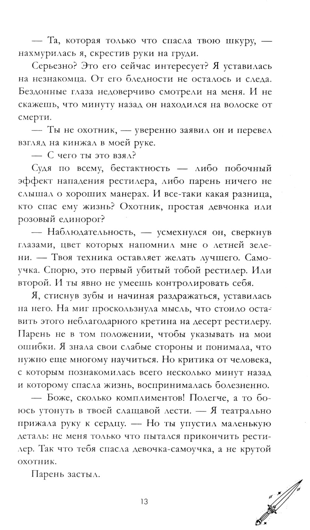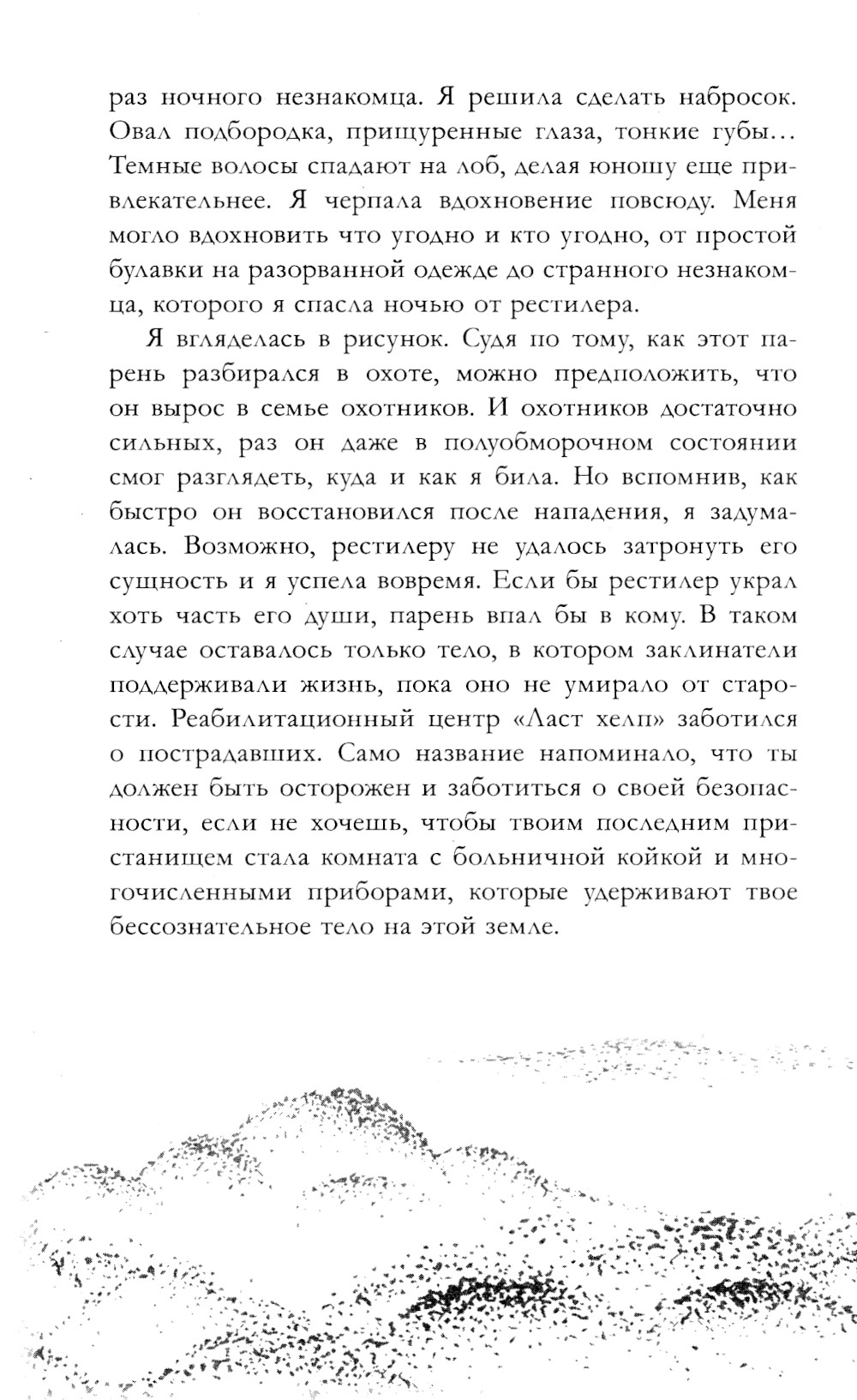 Мелисса - прирожденная охотница, умение бороться с рестилерами у нее в крови. Она ждет наступления темноты, чтобы раз за разом убивать потусторонних тварей, высасывающих из людей жизнь. Мелисса - одиночка, поэтому учеба в элитной академии Дэвинфоллд, где готовят охотников на рестилеров, становится для нее испытанием. Особенно когда она попадает на Турнир теней, участники которого коварны, хитры и мстительны. Кажется, здесь у каждого есть секрет... И особенно много их у главы спецотряда по борьбе с рестилерами Арли Блэка. Он враждует с Мелиссой или дружит? Он ненавидит ее или защищает? Почему каждая встреча с ним оборачивается для ее души самой черной ночью?| Издательство | Клевер-Медиа-Групп |