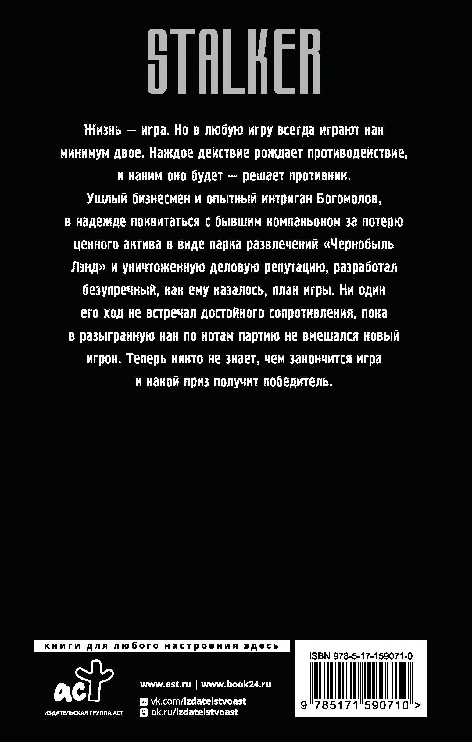 Жизнь - игра. Но в любую игру всегда играют как минимум двое. Каждое действие рождает противодействие, и каким оно будет - решает противник. Ушлый бизнесмен и опытный интриган Богомолов, в надежде поквитаться с бывшим компаньоном за потерю ценного актива в виде парка развлечений "Чернобыль Лэнд" и уничтоженную деловую репутацию, разработал безупречный, как ему казалось, план игры. Ни один его ход не встречал достойного сопротивления, пока в разыгранную как по нотам партию не вмешался новый игрок. Теперь никто не знает, чем закончится игра и какой приз получит победитель.| Издательство | Издательство "АСТ" |