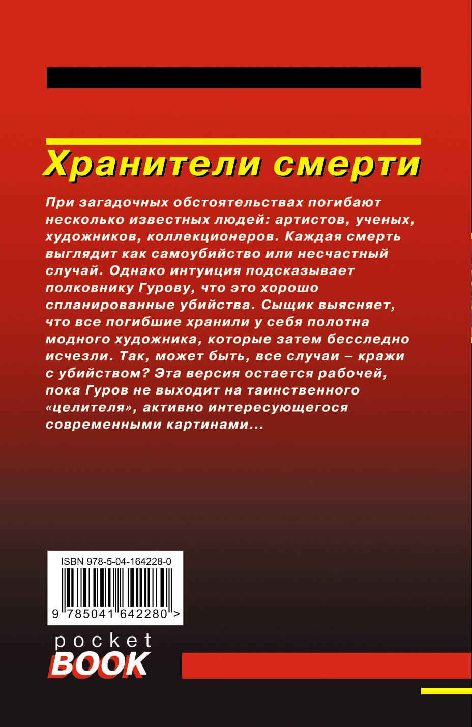 Еще одна книга легендарного тандема Леонов - Макеев. При загадочных обстоятельствах погибают несколько известных людей: артистов, ученых, художников, коллекционеров. Каждая смерть выглядит как самоубийство или несчастный случай. Однако интуиция подсказывает полковнику Гурову, что это хорошо спланированные убийства. Сыщик выясняет, что все погибшие хранили у себя полотна модного художника, которые затем бесследно исчезли. Так, может быть, все случаи - кража с убийством? Эта версия остается рабочей, пока Гуров не выходит на таинственного «целителя», активно интересующегося современными картинами… Николай Леонов, в прошлом следователь МУРа, не понаслышке знал, как раскрываются самые запутанные уголовные дела. Поэтому каждая его книга - это правдивая захватывающая история с непредсказуемой интригой и неожиданным финалом. Главный герой этих книг, полковник Лев Гуров - сыщик высокого класса, к тому же с массой положительных человеческих качеств. Его уважают друзья, боятся враги и любят женщины. Он - настоящий отечественный супермен. Романы о Льве Гурове вот уже сорок лет неизменно привлекают поклонников отечественного детектива. Ставшая классической серия «Черная кошка» насчитывает более 200 книг, вышедших тиражом в десятки миллионов экземпляров.| Издательство | Эксмо |