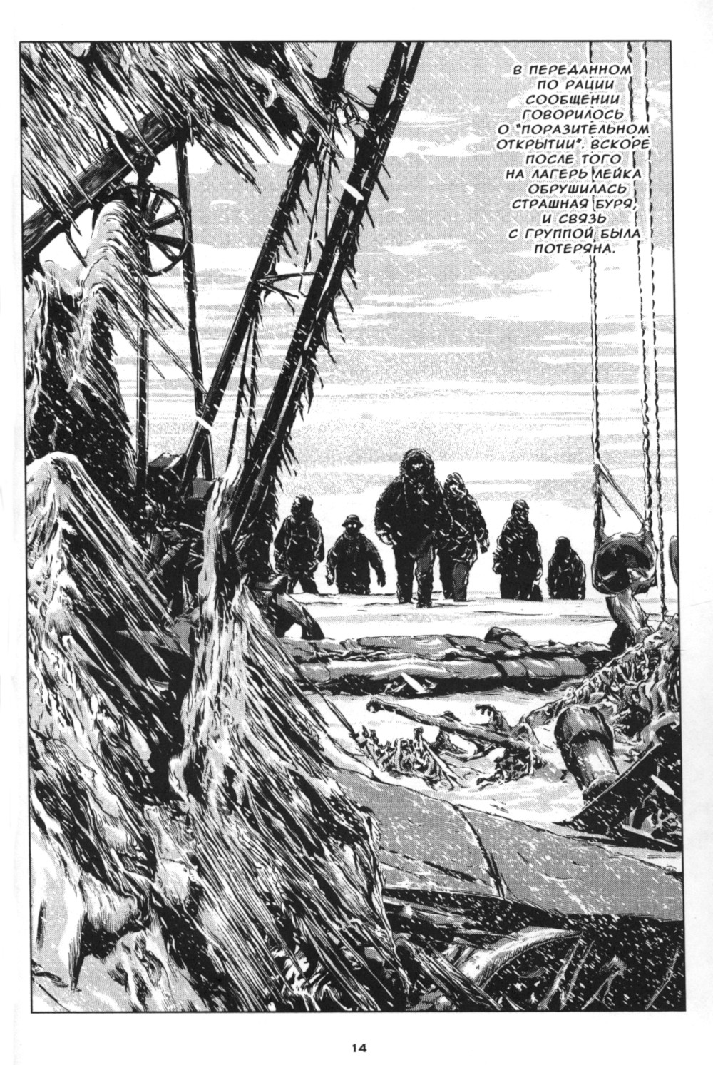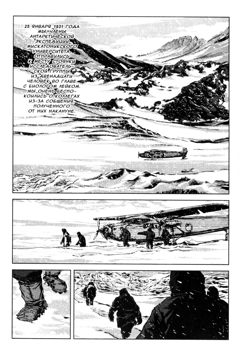 Полярная экспедиция сталкивается с запредельным ужасом древних веков. Это описание заброшенного ледяного города "древних", уводящего в недра земли. Графическая адаптация Г.Ф. Лавкрафта от Го Танабэ.
