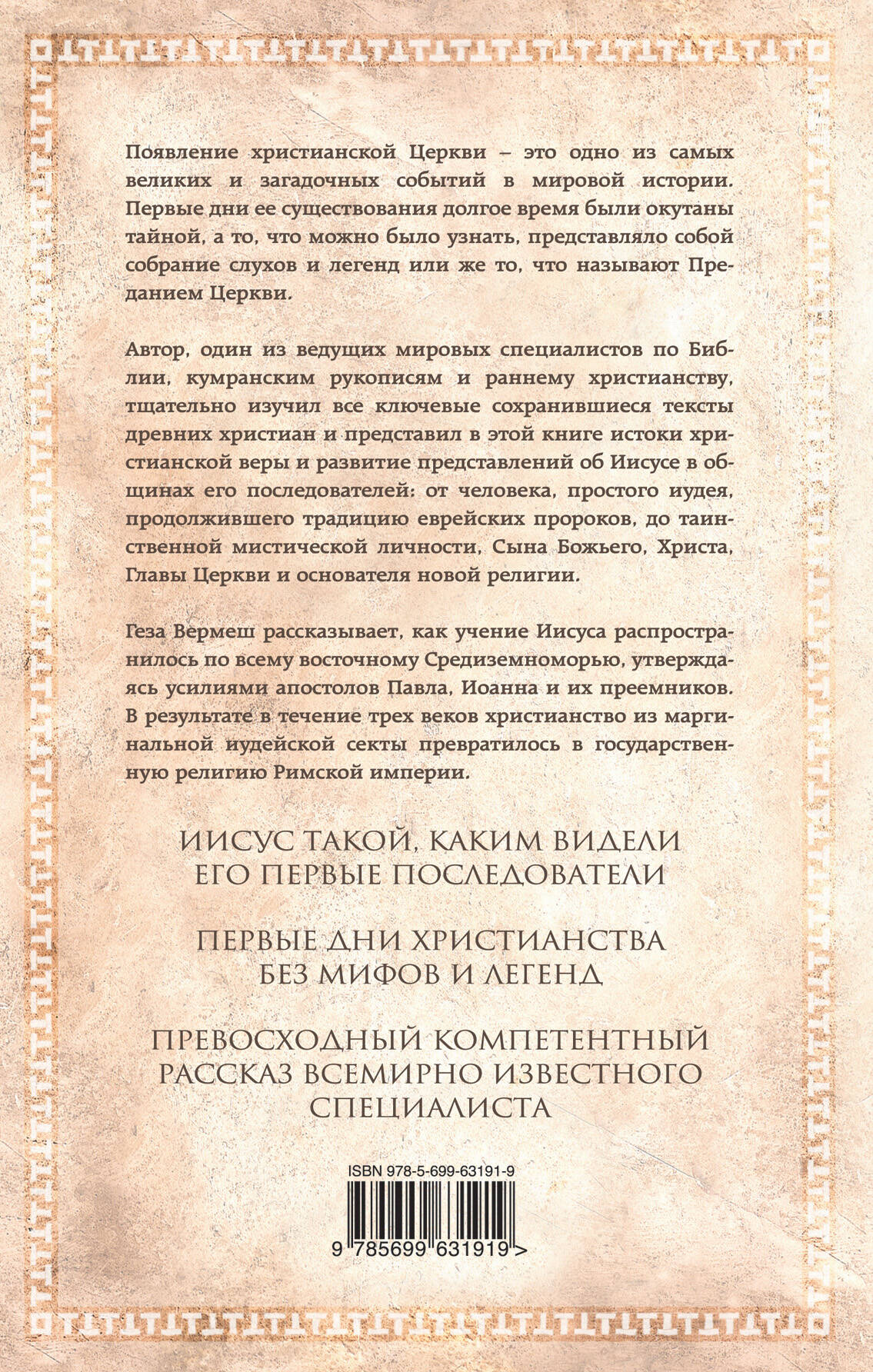 Появление христианской церкви - это одно из самых великих и загадочных событий в мировой истории. Первые дни ее существования долгое время были окутаны тайной, а то, что можно было узнать, представляло собой собрание слухов и легенд или же то, что называют церковным преданием. Эта книга - серьезная попытка приподнять завесу великой тайны основания церкви. В ней представлена грандиозная история появления и развития христианства: от Назарета 30-х годов - города, в котором родился основатель христианства - до I Вселенского собора в Никее, состоявшегося в 325 году - места, где был провозглашен догмат о божественности Иисуса. Геза Вермеш (1924-2013) - один из крупнейших мировых специалистов по иудаизму, рукописям Мертвого моря, новозаветной библеистике и истории раннего христианства.| Издательство | ООО "Издательство "Эксмо" |