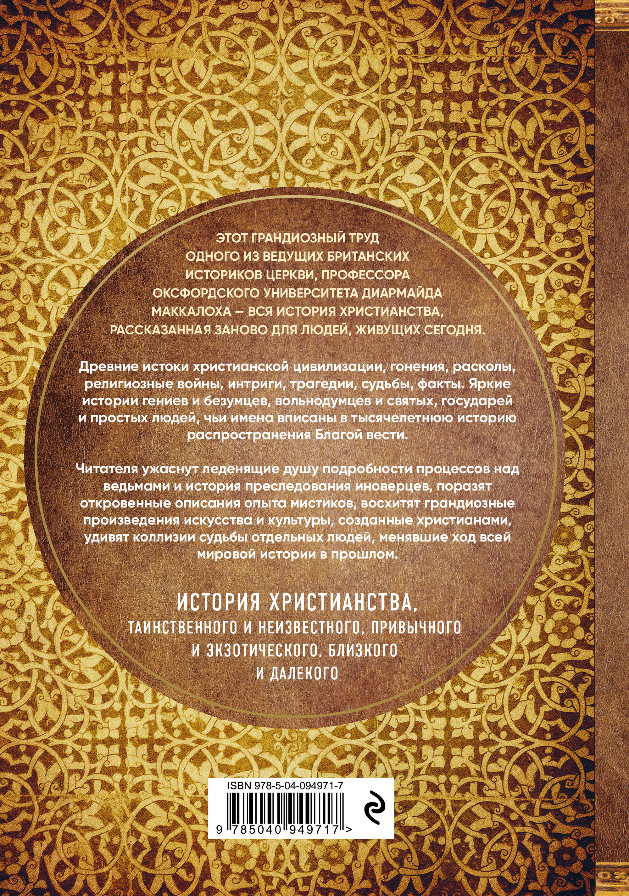 Второе издание первой всеохватывающей книги по истории христианства, написанной в XXI веке. Об авторе и этой книге Диармайд Маккалох (р. 1951 г.) - один из ведущих британских историков церкви, профессор Оксфордского университета, автор нескольких книг по истории христианства, о его направлениях и выдающихся деятелях, лауреат престижных книжных премий. С момента своего выхода в 2009 году книга «Христианство» получила крупнейшие в мире литературные награды за исторические труды: Премия Хесселя-Тилтмана (2010 г.), Премия Кандилла (2010 г.) и стала бестселлером в списках Amazon, Publishers Weekly и New York Times. В 2009 году по книге был снят 6-серийный научно-популярный документальный фильм «История христианства» на телеканале BBC.| Издательство | ООО "Издательство "Эксмо" |