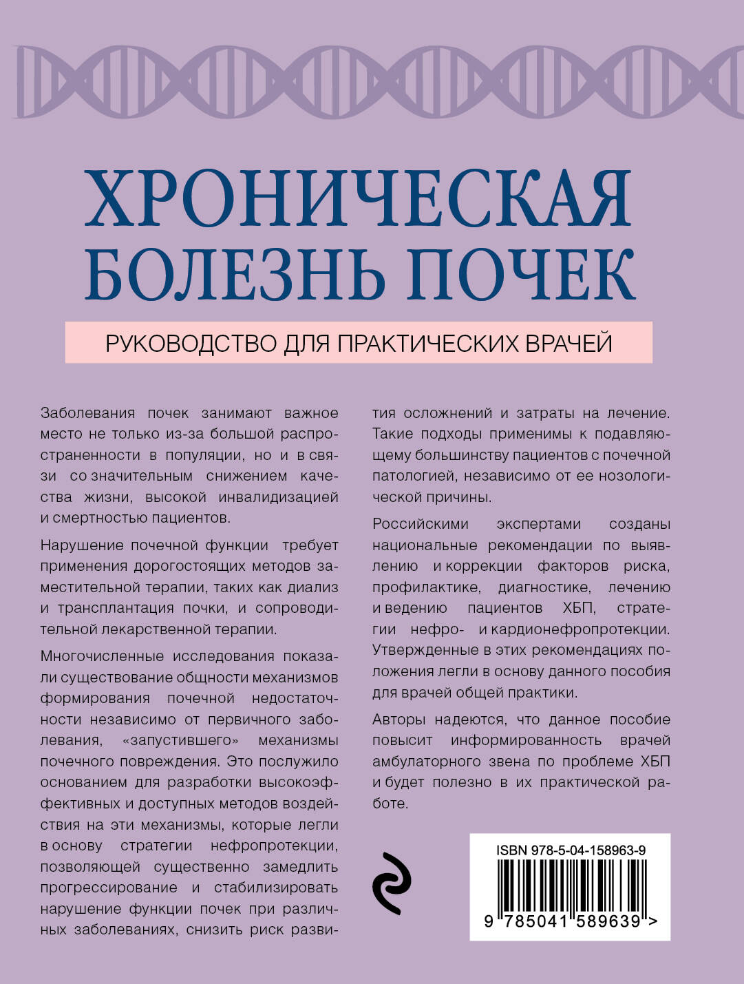 Проблема ХБП имеет большое значение для клинической практики. Существующая нефропротективная стратегия позволяет не только стабилизировать почечную функцию при нефропатиях различной этиологии, но и - возможно, это главное - предупредить их развитие. Следовательно, задача - как можно раньше выделить пациентов групп риска и начать проведение профилактических или лечебных мероприятий. Эта задача и ответственность ложится на плечи врачей амбулаторного звена. Именно они осуществляют раннее выявление, этиологическую диагностику, динамическое наблюдение пациентов с ХПН и широкое внедрение нефропротекции на ее ранних стадиях, совместно с нефрологом наблюдают этих пациентов на поздних стадиях ХБП и при проведении ЗПТ. Залогом успеха в выполнении этой миссии является постоянное обновление и расширение наших профессиональных знаний и навыков.| Издательство | ООО "Издательство "Эксмо" |