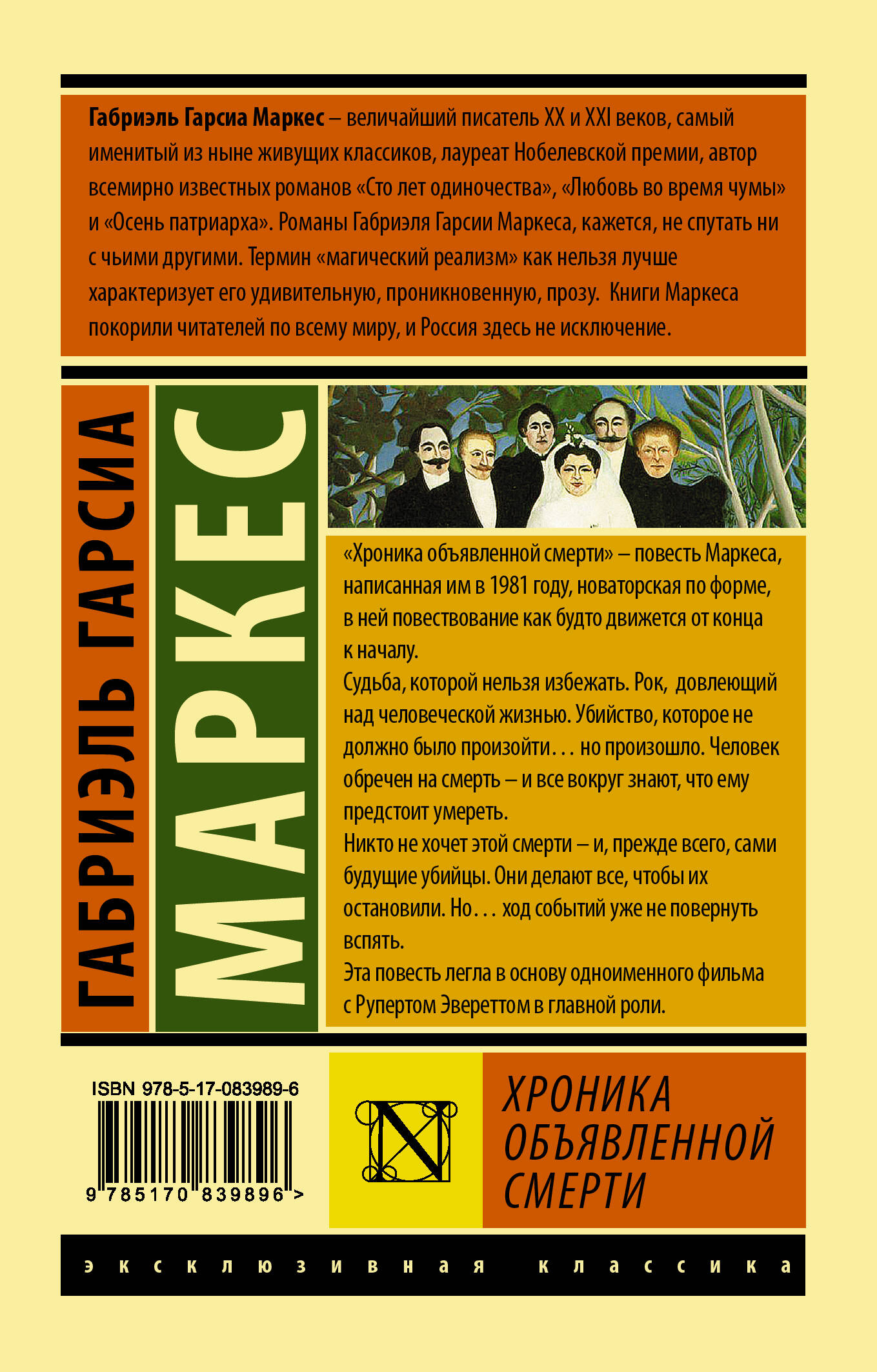Гарсиа Маркес, Габриэль "Хроника объявленной смерти" Габриэль Гарсиа Маркес - величайший писатель ХХ и XXI веков, самый именитый из ныне живущих классиков, лауреат Нобелевской премии, автор всемирно известных романов "Сто лет одиночества", "Любовь во время чумы" и "Осень патриарха". Романы Габриэля Гарсии Маркеса, кажется, не спутать ни с чьими другими. Термин "Хроника объявленной смерти" - повесть Маркеса, написанная им в 1981 году, новаторская по форме, в ней повествование как будто движется от конца к началу. Судьба, которой нельзя избежать. Рок, довлеющий над человеческой жизнью. Убийство, которое не должно было произойти… но произошло. Человек обречен на смерть - и все вокруг знают, что ему предстоит умереть. Никто не хочет этой смерти - и, прежде всего, сами будущие убийцы. Они делают все, чтобы их остановили. Но… ход событий уже не повернуть вспять. Эта повесть легла в основу одноименного фильма с Рупертом Эвереттом в главной роли.