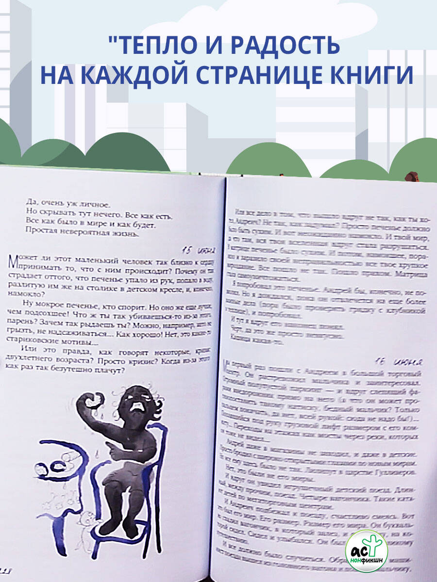 Андрей Колесников - спецкор издательского дома "Коммерсантъ", главный редактор журнала "Русский пионер", автор политических бестселлеров о президенте России и десятка других книг. Но есть среди многообразия его проектов один, особенный, - "Отцеводство", посвященный взрослению его детей. "Хроники дошкодного возраста" - это честный и искренний дневник отца, который с некоторой оторопью наблюдает за стремительным взрослением двухлетнего сына, которого не смогли назвать иначе, чем тоже Андреем: уж слишком оказался похож. Каждый день в жизни Андрея Андреича - это цепь величайших событий. Первое надкушенное яблоко (без этих яблок он скоро не сможет даже заснуть), первая улитка, встреченная на дороге, где Андреич вечно застывает возле первого лежачего полицейского... Отец делится своими заботами, волнением, тревогой и нежностью, в ежедневном режиме описывая, как сын растет и меняется, и становится не слишком ли уж умным для своих лет... Эта книга - актуальный архив воспоминаний, запечатленных, может, и для того, чтобы однажды взрослый Андреич вернулся к этим страницам и прочитал о том, из какого дошкодного возраста он явился в мир взрослых людей. А скоро, вот-вот, у него начнется шкодный возраст. Хроники дополняют созданные почти в репортажном стиле и при этом полные художественного трепета иллюстрации художников аксёновы(е) инга +лёша.| Издательство | Издательство "АСТ" |