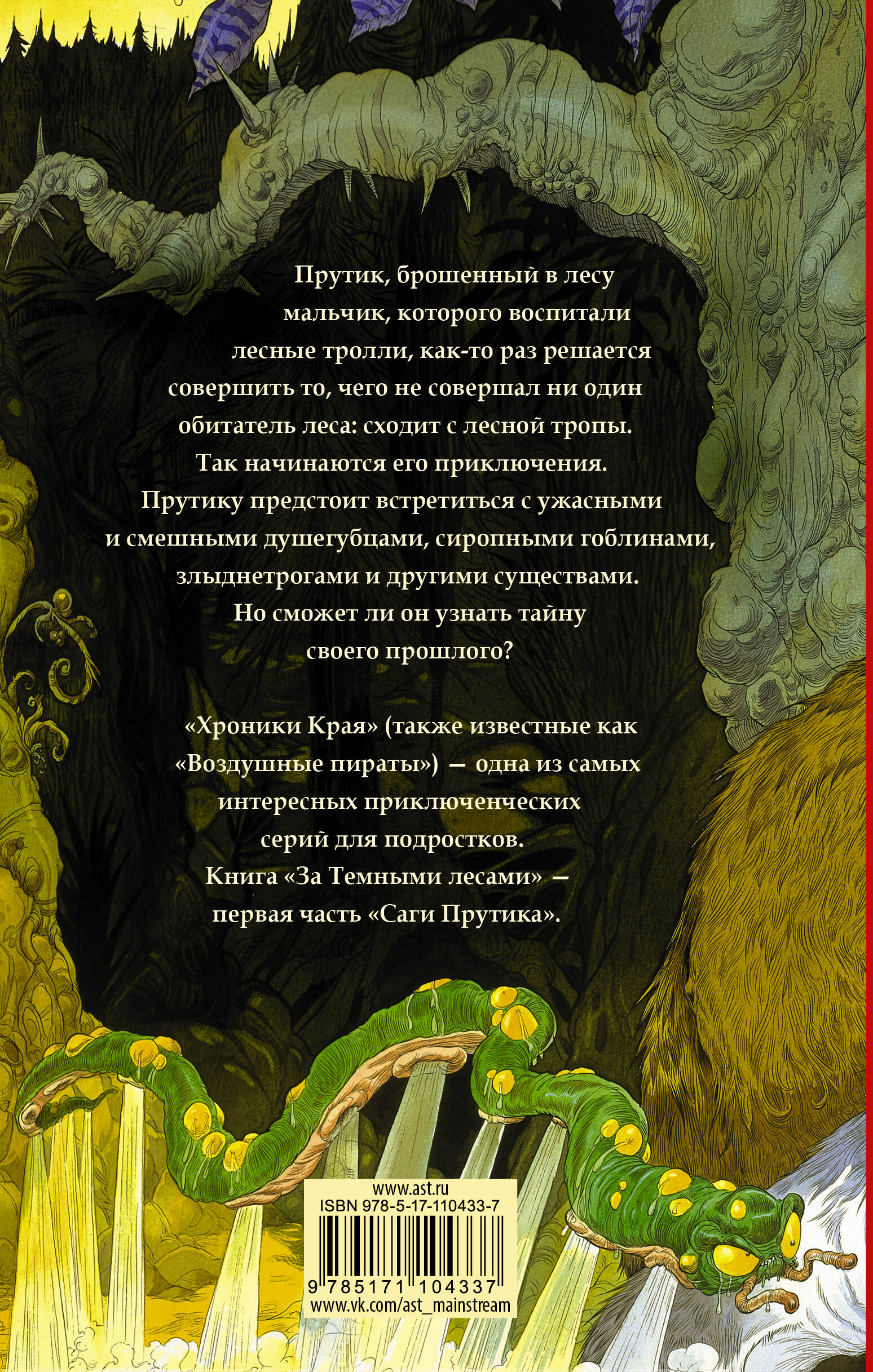 Прутик, брошенный в лесу мальчик, которого воспитали лесные тролли, как-то раз решается совершить то, чего не совершал ни один обитатель Леса: сходит с лесной тропы. Так начинаются его захватывающие приключения. Прутику предстоит встретиться с ужасными и смешными душегубцами, сиропными гоблинами, злыднетрогами и другими существами. Но сможет ли он узнать тайну своего прошлого? "Хроники Края" (также известная как "Воздушные пираты") - одна из самых интересных приключенческих серий для подростков. Книга "За Темными Лесами" - первая часть подсерии "Сага Прутика".| Издательство | ИЗДАТЕЛЬСТВО "АСТ" |