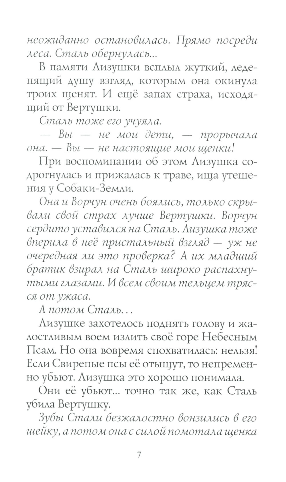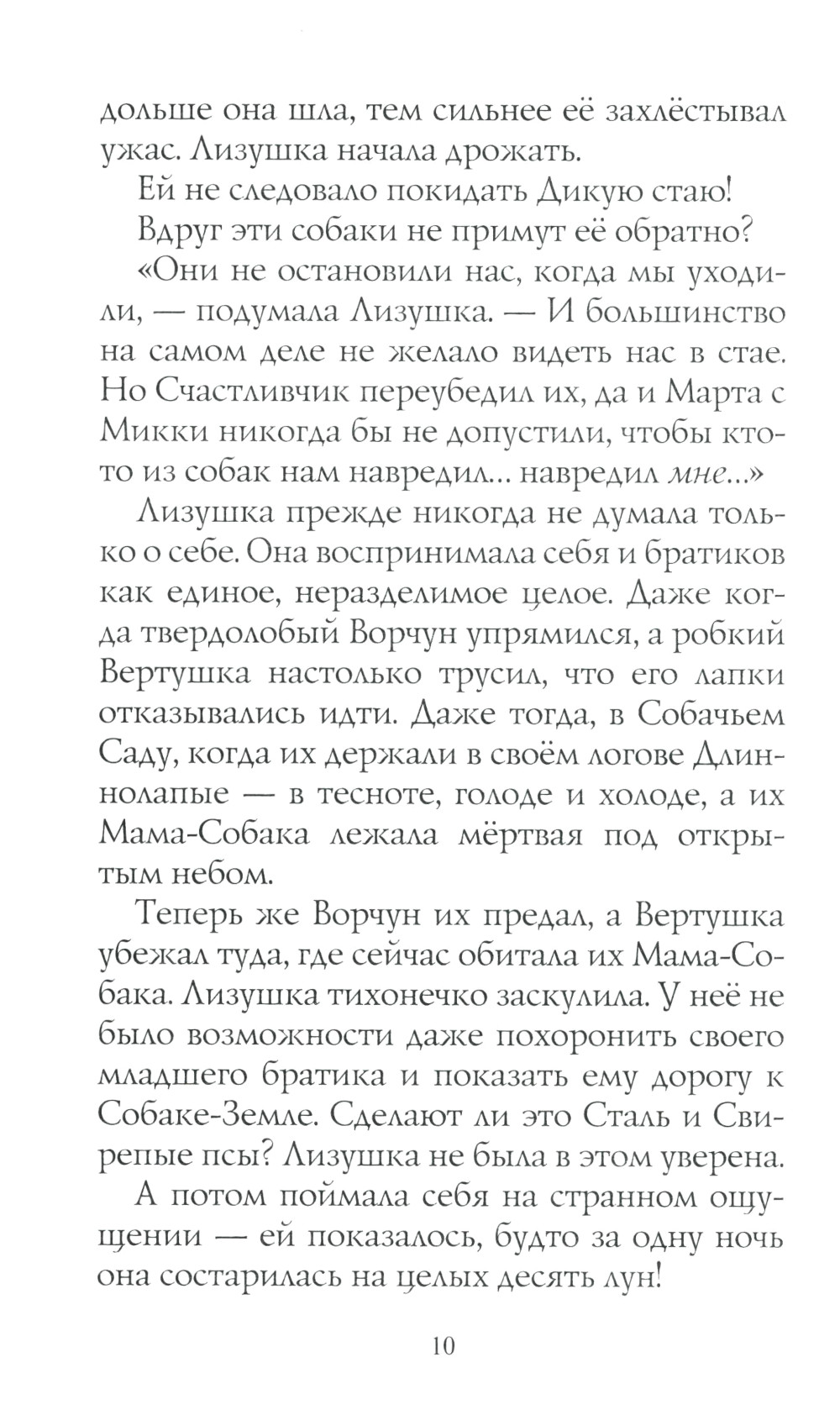 Гроза - изгнанница. После долгого разговора с ее стаей, которая с недоверием и подозрением смотрит на нее, она, наконец, свободна начала следовать своему собственному пути, но она чувствует себя потерянной, чем когда-либо. Есть только две собаки, которые она знает, и они никогда от нее не уйдут - Дротик и Белла. Чтобы найти Беллу и Дротика, который теперь принадлежат Стае Беллы и Дротика, Гроза сражается через длиннолапых, Собачек-на-поводочке и запретную стаю волков, все для поиска места, где она бы наконец могла принадлежать.| Издательство | Просвещение |