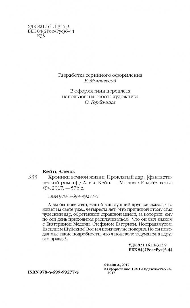 Аннотация: Хроники вечной жизни. Проклятый дар