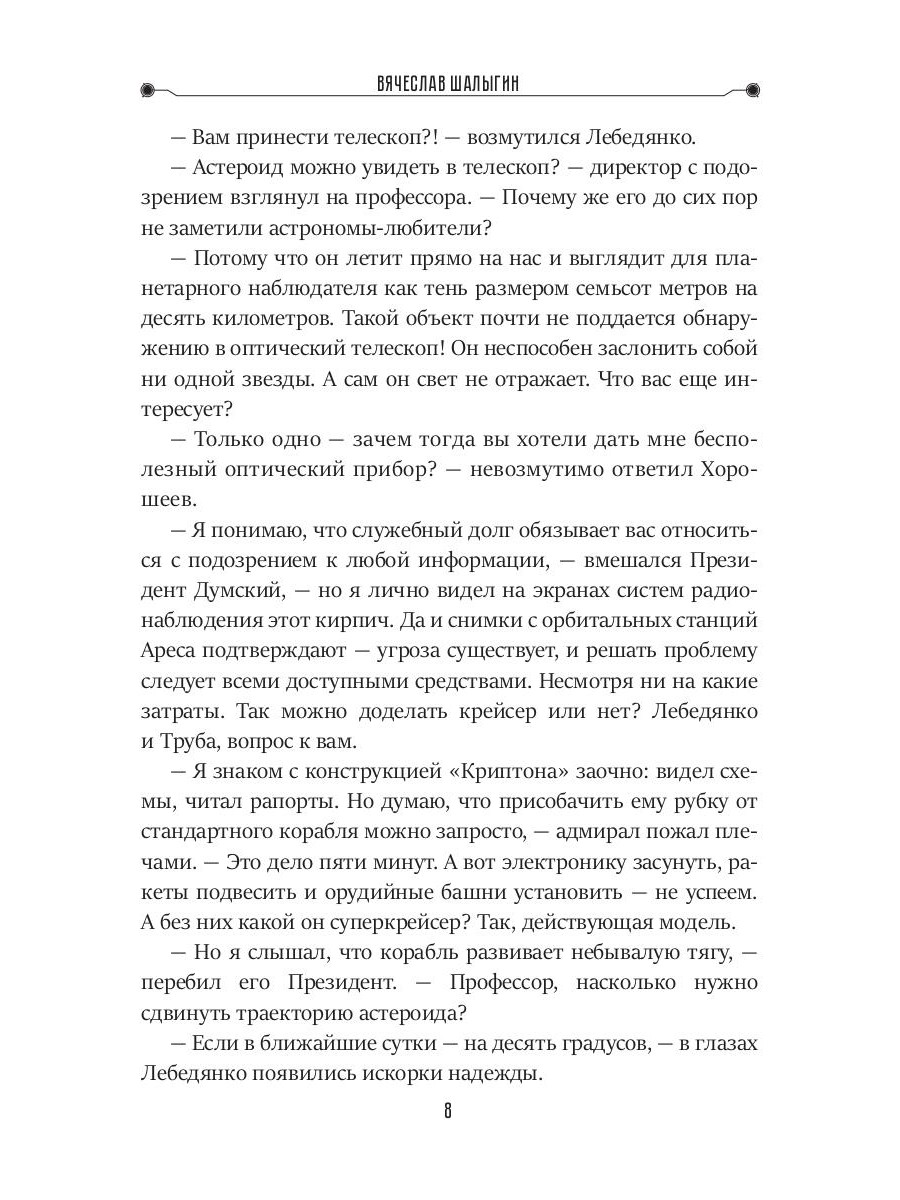 К Планете летит астероид и сбить его с курса может лишь космический корабль «Криптон». Но управлять этим кораблём сумеет только настоящий герой: невозмутимый, сильный, психически устойчивый и... абсолютно равнодушный ко всему на свете. Даже к самому себе. Где его найти? Пожалуй, не проблема, места известны. Однако агенты Планетарной службы безопасности находят нужного человека вовсе не в казарме сил специального назначения. Они находят его на самом дне, в подвалах, где живёт всевозможное отребье. Думаете, парадокс? Если бы это оказалось единственной нестыковкой в этой истории! Настоящая проблема возникла там, где не ждали - куда-то вдруг подевался «Криптон»! Да и с астероидом что-то пошло не так...| Издательство | Т8 RUGRAM |