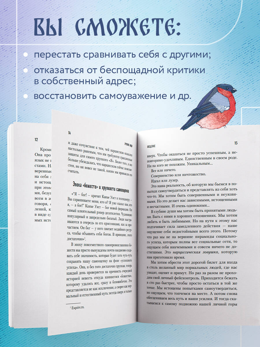 Как бы вы описали нарцисса? Как самовлюбленного эгоиста? Бездушного, холодного гордеца? Но уж точно не как хрупкого или ранимого человека, верно? Действительно, среди нас есть те самые перверзные нарциссы, о жестокосердности которых слагают легенды. Однако, по данным ученых, людей с выраженной нарциссической патологией не более 4%. Гораздо больше других - скрытых нарциссов. Их нарциссизм, то есть здоровое представление о собственной значимости, тоже ранен. Однако вместо проявления излишней самоуверенности они постоянно обесценивают собственные достижения и ругают себя за малейший промах. Взамен напускному самолюбованию выбирают неуверенность в себе и страдают от фоновой тревоги. Их самооценка хрупка, так как полностью зависит от мнения окружающих. Автор этой книги, психотерапевт и эксперт по нарциссизму Юля Пирумова, разрушает сложившиеся годами стереотипы о нарциссах и приоткрывает тайную дверь в хрупкий мир, где каждый невольно узнает самого себя. ПОЧЕМУ ЭТА КНИГА ДОСТОЙНА ПРОЧТЕНИЯ Благодаря уникальной системе упражнений, которую автор выработал в процессе клиентской терапии, вы сможете: • перестать сравнивать себя с другими; • отказаться от беспощадной критики в собственный адрес; • прекратить предъявлять к себе и окружающим нереалистичные требования, • спокойно реагировать на успехи и достижения других людей; • разобраться в причинах охлаждения в отношениях; • восстановить самоуважение; • и в целом выносить «невыносимую тяжесть бытия». ОТЗЫВЫ «У каждого из нас есть нарциссическая травма той или иной степени. Нарциссизм вас касается, если вы стыдитесь себя, не можете признать себя ценным, прячете подлинные чувства и показываете то, что, как вам кажется, должно понравиться окружающим. Юлия методично, глава за главой, разъясняет, что нарциссы - это не диагнозы. Это люди, которые страдают, нуждаются и боятся. Нарциссы - это все мы. Многие читатели найдут в книге поддержку в понимании и принятии себя». - Вероника Хлебова, экзистенциальный психотерапевт, популярный psy-блогер| Издательство | ООО "Издательство "Эксмо" |