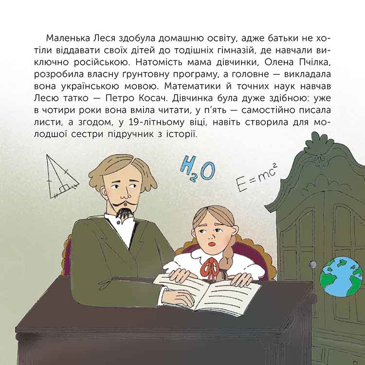 Геніальна письменниця і поетка, яка знала декілька іноземних мов, блискуче грала на фортепіано, багато подорожувала світом, а головне - понад усе любила Батьківщину. У неї був складний, але неймовірно цікавий життєвий шлях. Усе це про Лесю Українку! Чому варто прочитати: Ця книжка, яку написала Альона Пуляєва і проілюструвала Юлія Данилова, містить безліч цікавинок про життя і творчість видатної українки. Викладений доступною мовою біографічний матеріал та яскраве оформлення зацікавлять малечу. Авторка: Альона Пуляєва - авторка понад 100 видань для навчання й розвитку дітей, філологиня української мови та літератури. Основне джерело її натхнення - маленька донечка Ася, яка і є першою читачкою та рецензенткою маминих рукописів.| ISBN | 978-617-8387-35-8 |