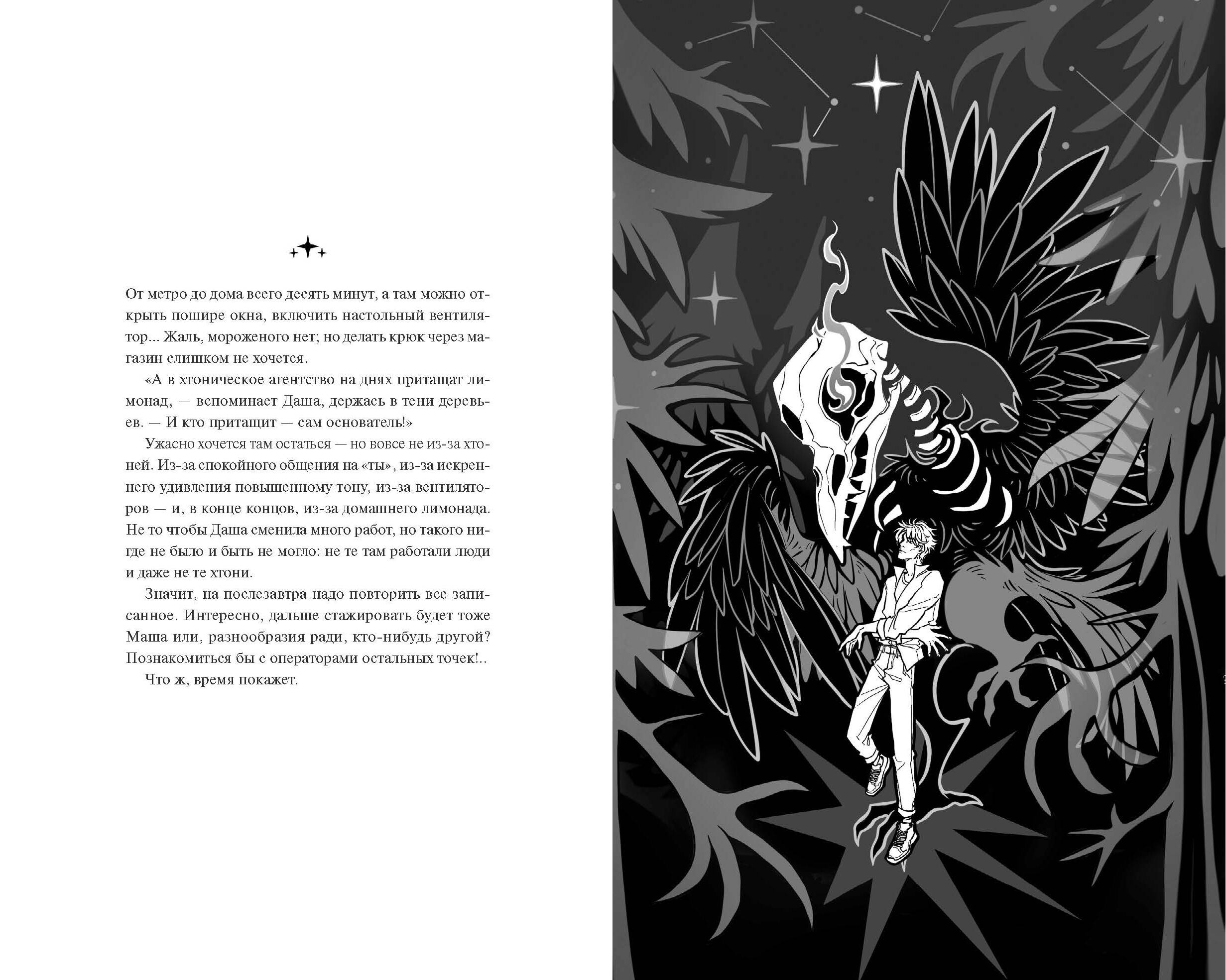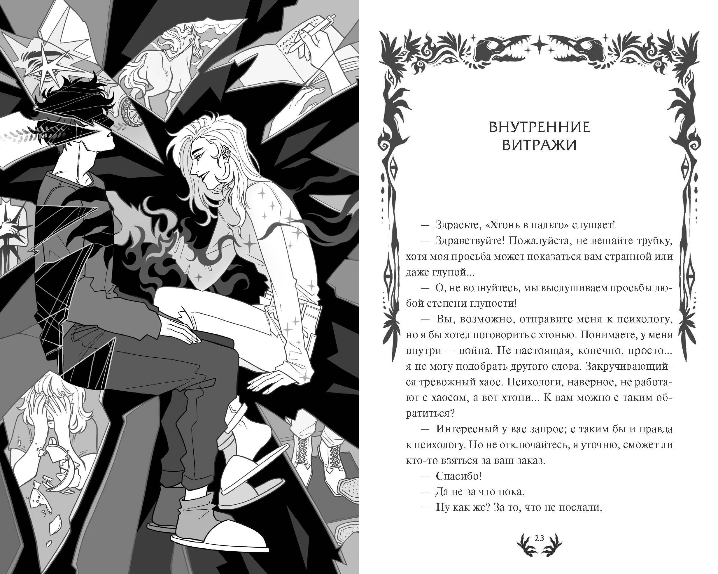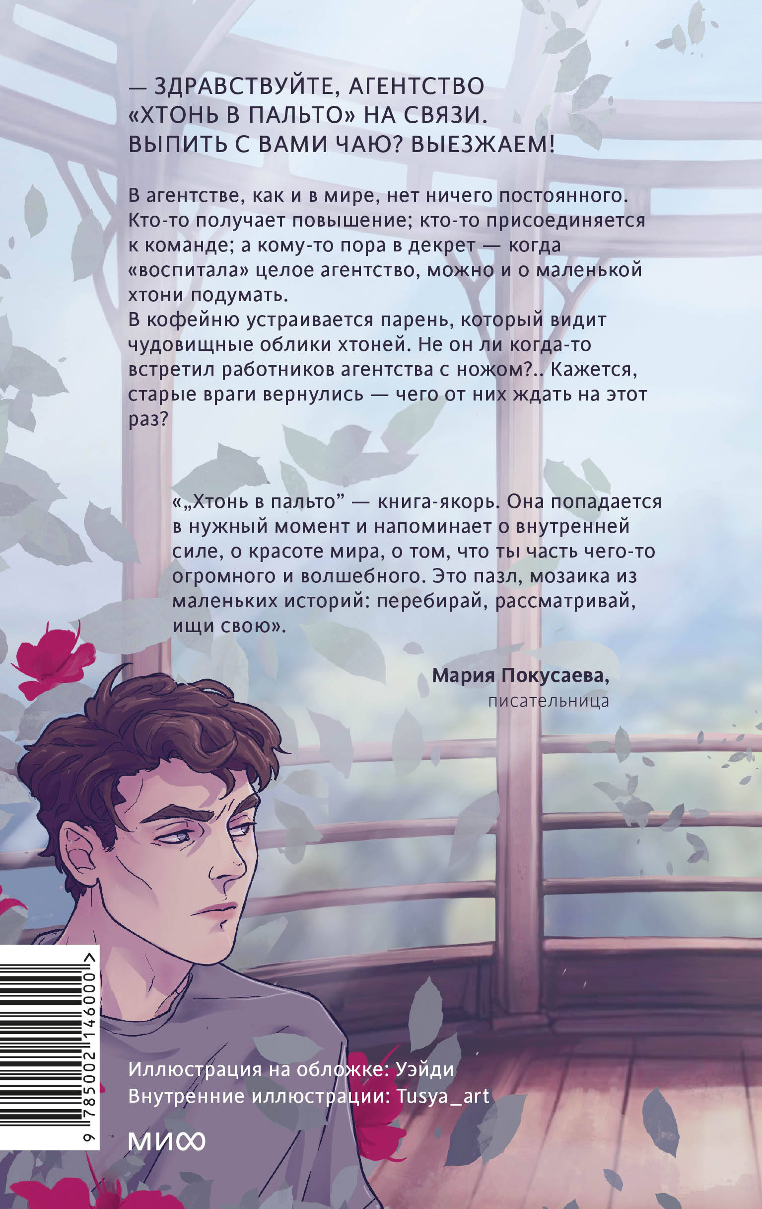 Продолжение бестселлера Ирины Ивановой «Хтонь в пальто». Уютная и теплая история с атмосферными черно-белыми иллюстрациями, чтение которой ощущается как объятие. Во второй части трилогии хтони не носят пальто, не пьют литрами чай, но все так же говорят по душам за чашкой кофе, валяют дурака и гуляют по городу. Кто-то из хтонического агентства оставляет должность работника, чтобы стать гордым заместителем генерального директора. Кто-то радостно откликается на вакансию оператора. Кто-то уходит в декрет. Но не все так просто: на стажировку в полюбившуюся хтоням кофейню приходит парень, который видит их чудовищные облики. Хтони вынуждены вновь столкнуться со старыми врагами - как в воспоминаниях, так и лицом к лицу. От автора Кто не думал, что у «Хтони в пальто» будет продолжение? В первую очередь, я сама. Но кое-какие персонажи нагло влезли ко мне в голову: «Эй, стоять, мы не договорили!» - и пришлось писать вторую часть. Спойлер: не договорили они настолько, что будет ещё и третья. Весна и лето - время активного роста. Вот и персонажи в этой книге, действия которой как раз начинаются летом, растут. Все это происходит на фоне традиционных странных заказов - от желания обсудить некий вопрос именно с хтонью до просьбы взглянуть на внутренний хаос, - прогулок по городу и разговоров по душам на кухнях и в кофейнях. Я постаралась сохранить формат и атмосферу первой части. Думаю, так и должны выглядеть циклы. Для кого эта книга Для тех, кому хочется поднять себе настроение. Для поклонников уютных и теплых историй. Для тех, кому полюбились милые хтони из первой части.| Издательство | МАНН, ИВАНОВ И ФЕРБЕР ООО |