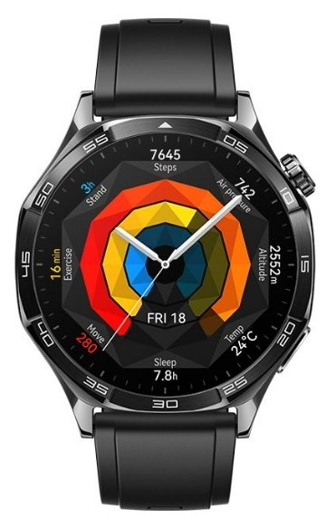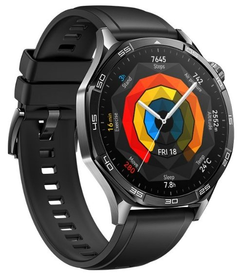 <p>Huawei Watch GT5<br>Диагональ экрана: 3,63 см (1,43 дюйма)<br>Технология экрана: AMOLED<br>Разрешение экрана: 466 x 466 пикселей<br>Сенсорный экран<br>Объем оперативной памяти: не указан<br>Wi-Fi: нет<br>GPS<br>Емкость аккумулятора: 524 мА·ч<br>Операционная система: HarmonyOS<br>Цвет ремешка: черный<br>Размер ремешка: 22 мм (подходит для запястья обхватом 140-210 мм)<br>Вес: 48 г</p>