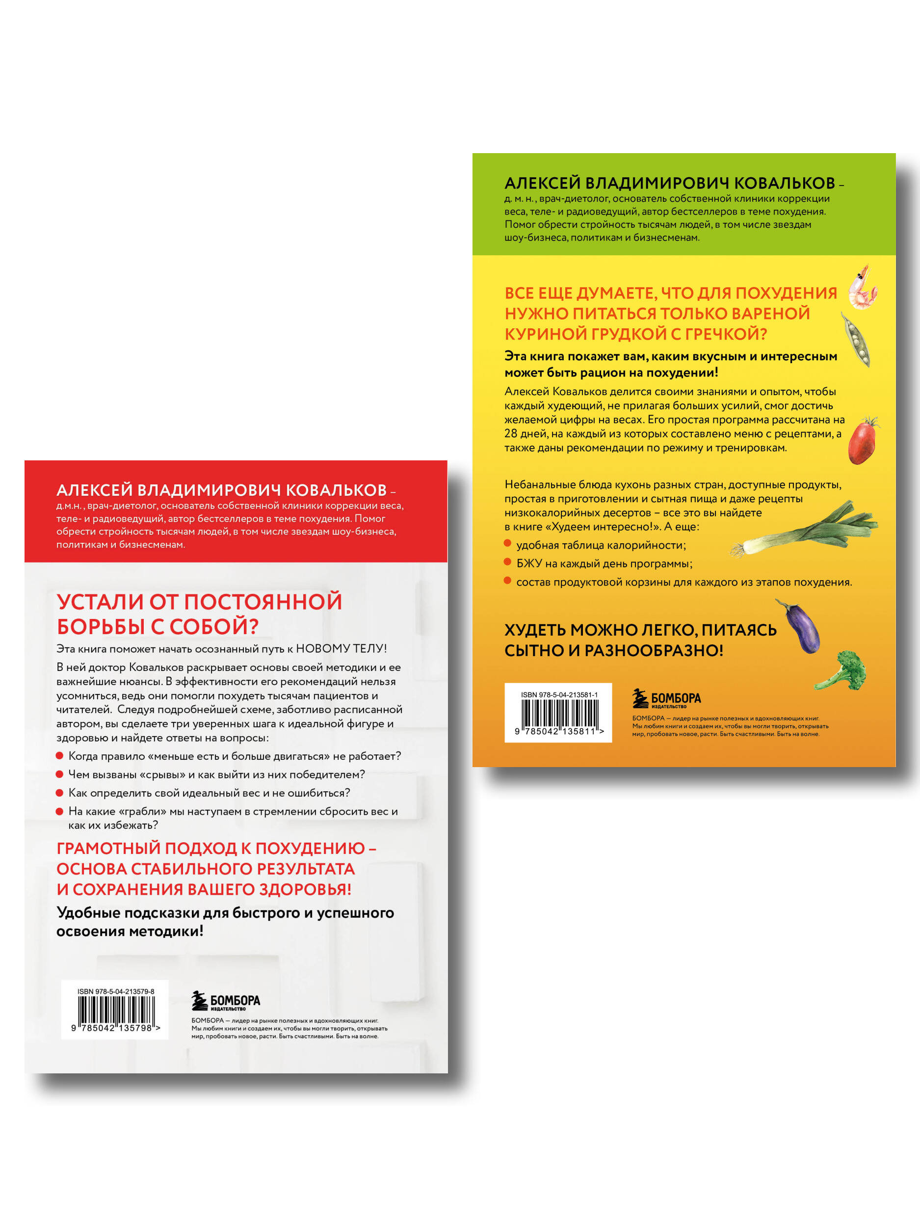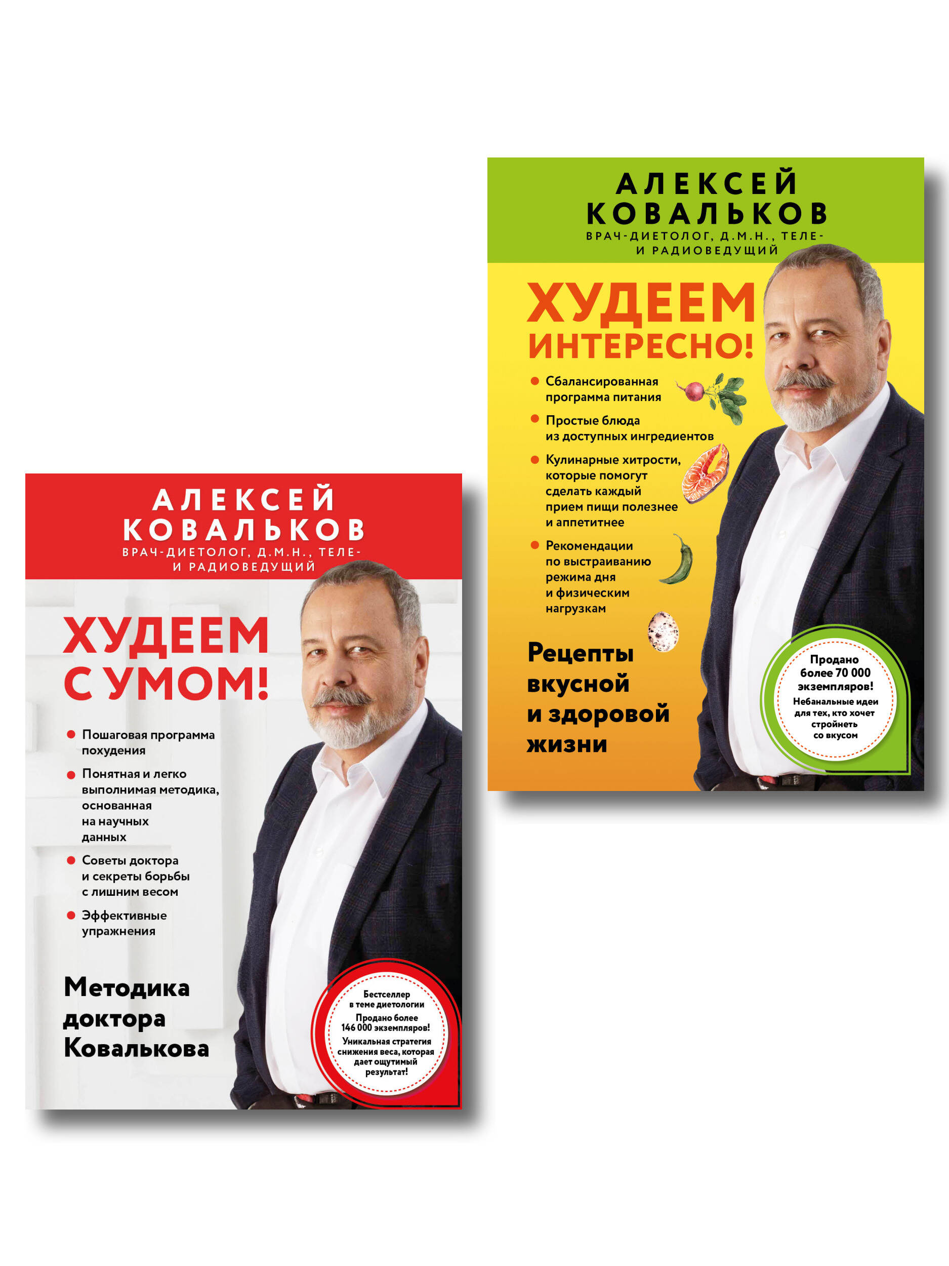 Доктор Ковальков - эксперт в вопросах снижения веса, основатель собственной клиники и врач, разработавший уникальную методику похудения. Его книги - прикладное руководство с полезными рецептами и рекомендациями, которое поможет составить правильный рацион и научиться готовить легко, чтобы стать легче! Комплект из 2-х книг. 1. «Худеем с умом! Методика доктора Ковалькова» Книга доктора Ковалькова, одного из самых уважаемых экспертов в вопросах снижения веса, основателя собственной клиники. Его методика, проверенная временем и результатами сотен тысяч клиентов клиники Алексея Владимировича, поможет найти свой путь к стройному телу, даже если вы далеки от темы здорового образа жизни и никогда ей не интересовались. Метод доктора Ковалькова основан на трех простых шагах, каждый из которых подробно описан в этой книге. Алексей Владимирович не только детально описывает, что и как нужно делать, чтобы добиться успеха, но и делится советами, которые помогут преодолеть трудности на пути к идеальному телу, а также дает важные подсказки и замечания. Это настольная книга для всех, кто устал от обилия диет и подходов к похудению и хочет простого и понятного плана, эффективность которого доказана на практике. 2. «Худеем интересно! Рецепты вкусной и здоровой жизни» Вы узнаете: · Как хорошее настроение влияет на потерю веса? · Чем заменить нелюбимый продукт? · Как превратить готовку в творческий процесс? · Можно ли худеть, не голодая? А также пополните свою поваренную книгу сотней новых рецептов блюд, которые принесут не только удовольствие, но и здоровье!| Издательство | ООО "Издательство "Эксмо" |