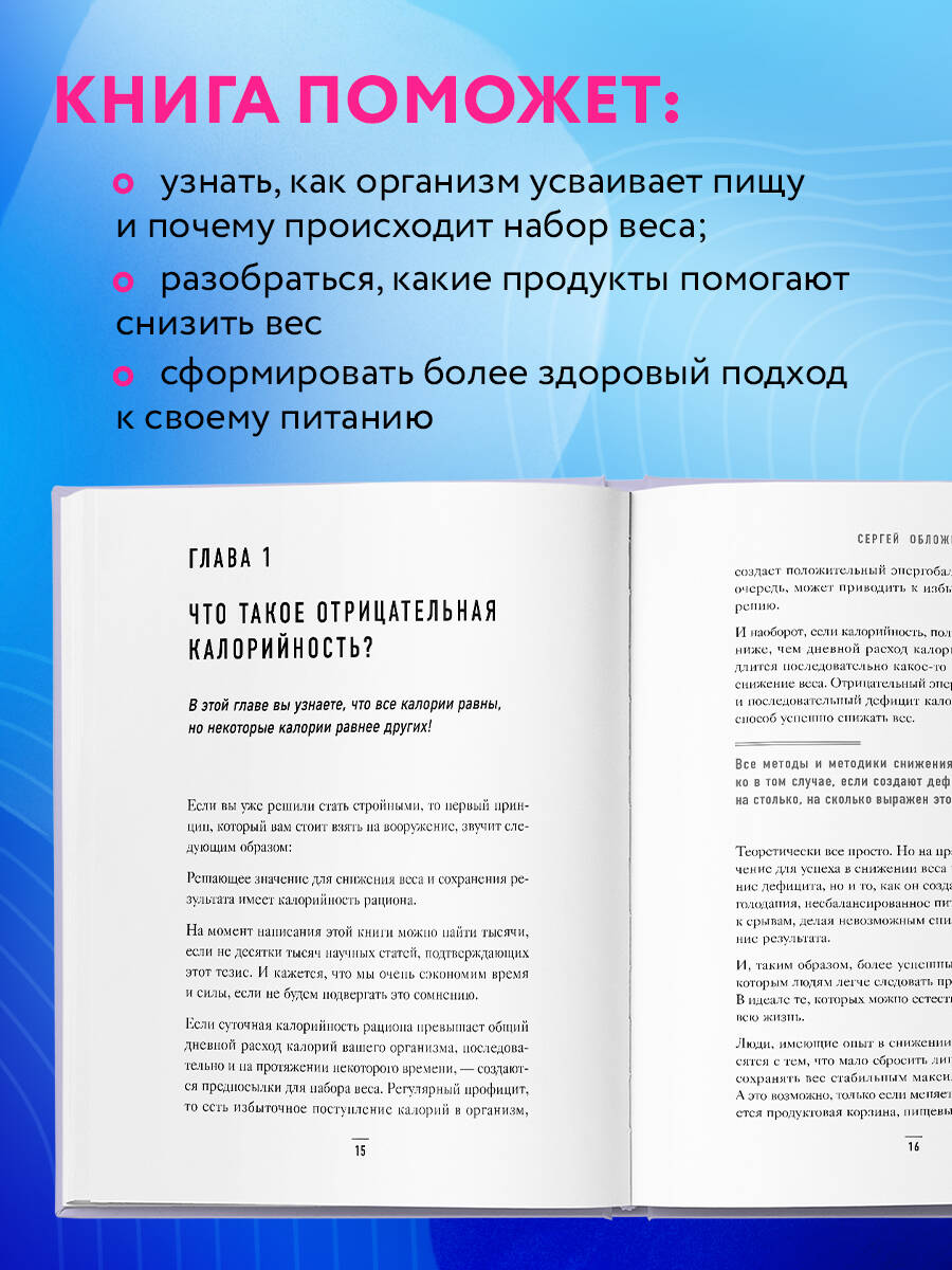 Хотите вкусно и много есть, но боитесь набрать лишние килограммы? Тогда вам точно понадобится эта книга. Как составить рацион на день? Что такое «отрицательная калорийность»? Какие продукты помогают, а какие, наоборот, мешают худеть? На эти и многие другие вопросы Сергей Обложко, врач-психотерапевт, диетолог, специалист по снижению веса, дает ответ в своей книге «Худеем по методу отрицательной калорийности». Вы научитесь правильно считать калории, готовить вкусные и полезные блюда, собирать метаболическую тарелку и начнете худеть в свое удовольствие!| Издательство | ООО "Издательство "Эксмо" |