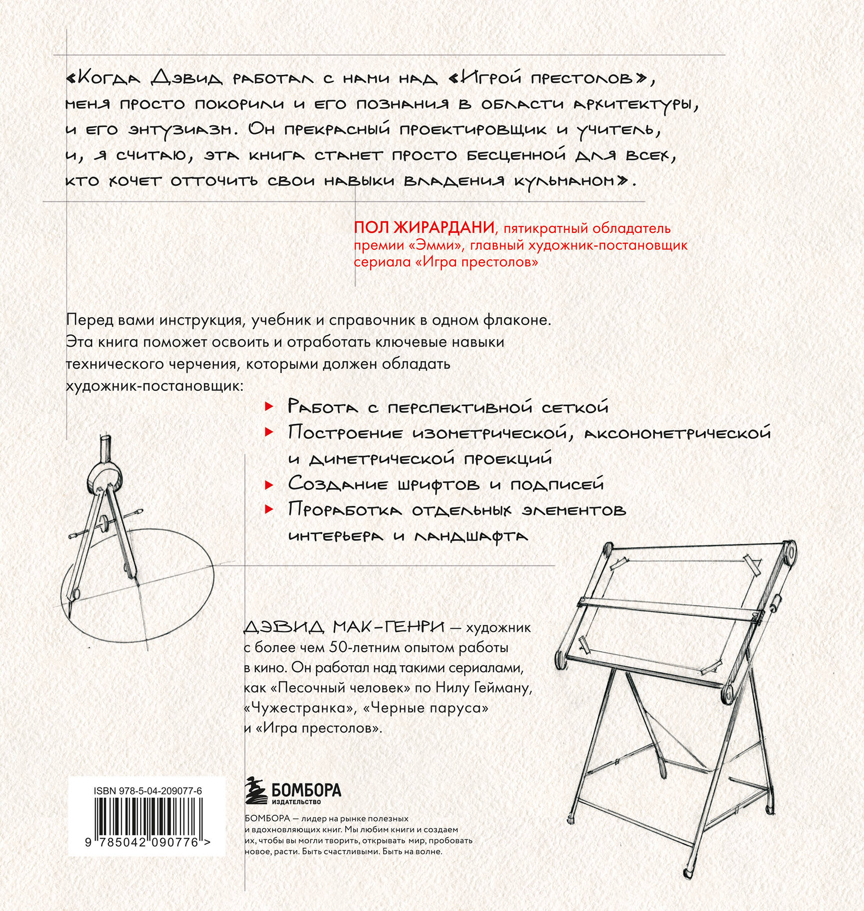 «Единственный недостаток книги "Художник в кино. Полное руководство по разработке визуальных решений для кино и сериалов" заключается в том, что, когда я учился в школе и в колледже, ее еще не было. Она обязательна к прочтению для всех начинающих художников-оформителей. Эта книга уверенно напоминает о том, как органично, с какой простотой и изяществом чертежи подкрепляют видение художника». - Джон Гари Стил, художник, «Песочный человек» (2022), «Чужестранка» (2014-20…) и «Лютер» (2023) Дэвид МакГенри - профессионал с более чем 50-летним стажем в создании визуального контента для кино и телевидения. Его новая книга, первое русскоязычное издание уникального руководства, предлагает читателям все необходимые инструменты и техники для освоения искусства ручного черчения. На страницах этого издания Дэвид, который работал над культовыми проектами, такими как «ПЕСОЧНЫЙ ЧЕЛОВЕК» и «ИГРА ПРЕСТОЛОВ», делится своим богатым опытом. Он раскрывает секреты проектирования, которые помогут вам развить навыки, необходимые для успешной карьеры в индустрии визуальных искусств. В век цифровых технологий умение рисовать от руки остается важным навыком для художников-постановщиков, декораторов, специалистов по реквизиту и даже режиссеров. Вы освоите ключевые навыки, необходимые в данной области: - Работа с перспективной сеткой. - Построение изометрической, аксонометрической и диметрической проекций. - Создание шрифтов и подписей. - Проработка отдельных элементов интерьера и ландшафта: арки, фрагменты кладки, лестницы и т.д. Ну и, конечно, выполните УПРАЖНЕНИЯ ПО ПРОЕКТИРОВАНИЮ, которые помогут отточить эти навыки. «Художник в кино. Полное руководство по разработке визуальных решений для кино и сериалов» станет вашим надежным путеводителем по всем этапам творческого процесса: от выбора правильных инструментов до создания детализированных чертежей и планов. Узнайте, как воплотить свои идеи в жизнь и превратить их в захватывающие визуальные образы!| Издательство | ООО "Издательство "Эксмо" |
