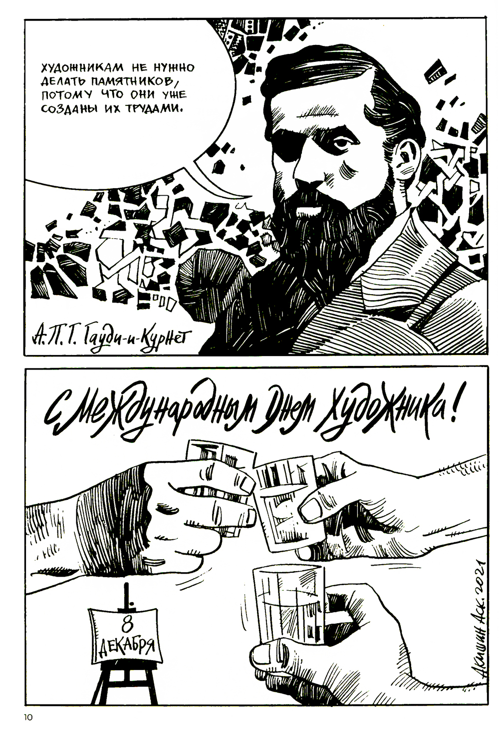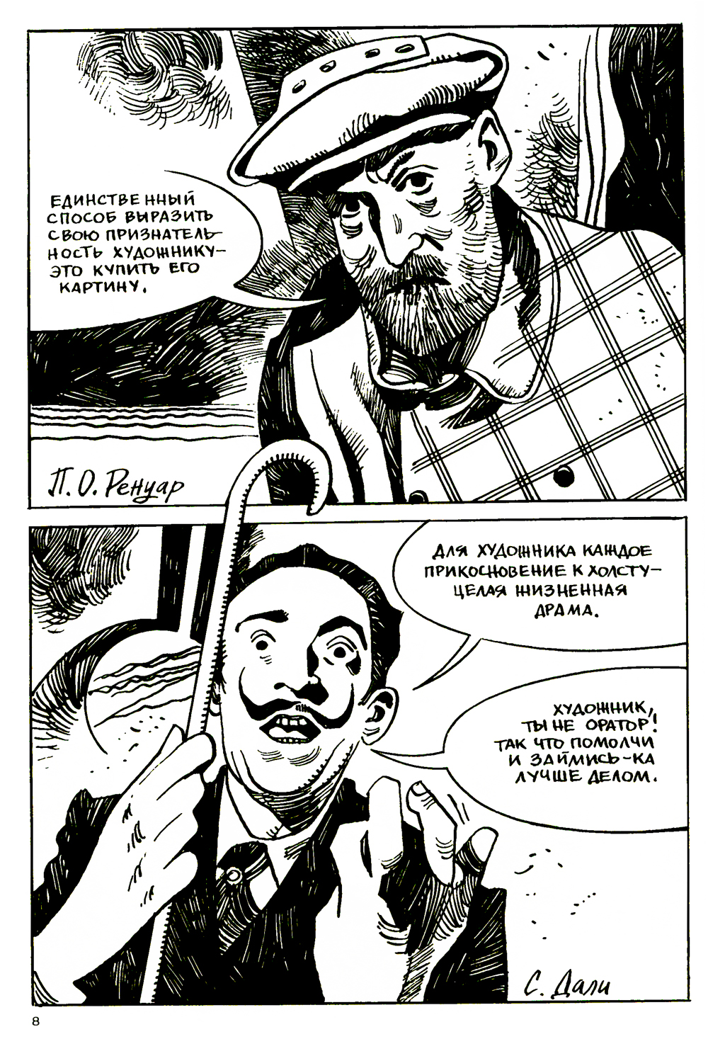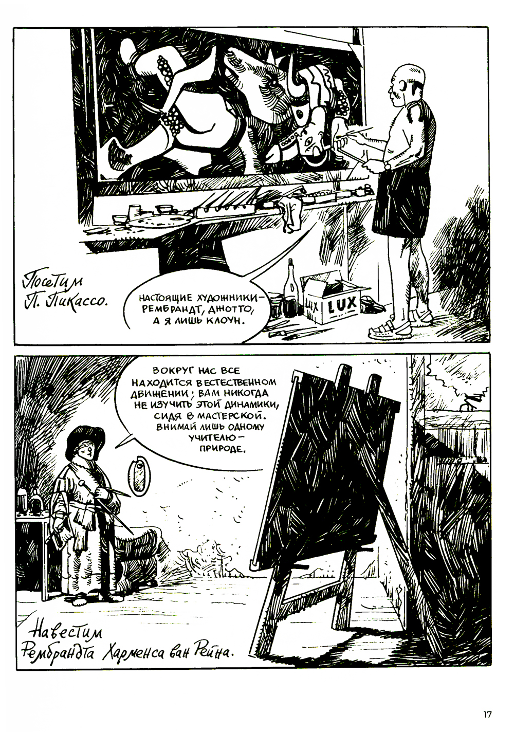 Аскольд Акишин давно уже не нуждается в представлении. Мастер отечественного графического романа известен не только в России, но и во многих странах Европы, и даже Соединенных Штатах. Начав рисовать комиксы в 1985 году, Аскольд рисует их и по сей день, когда многие коллеги-ровесники уже «отошли от пера». До сих пор автор предпочитает рисовать традиционно - на бумаге, пером и тушью, поэтому графика при своей академичности сохраняет живость. Сборник «Художники» - несколько историй, объединенных одной темой, темой творца и его творчества. На страницах этого графического романа известные живописцы разных эпох поделятся своей мудростью, покажут свои мастерские и дадут напутствие потомкам. Ars longa vita brevis - Жизнь коротка, искусство вечно.| Издательство | Детская литература |
