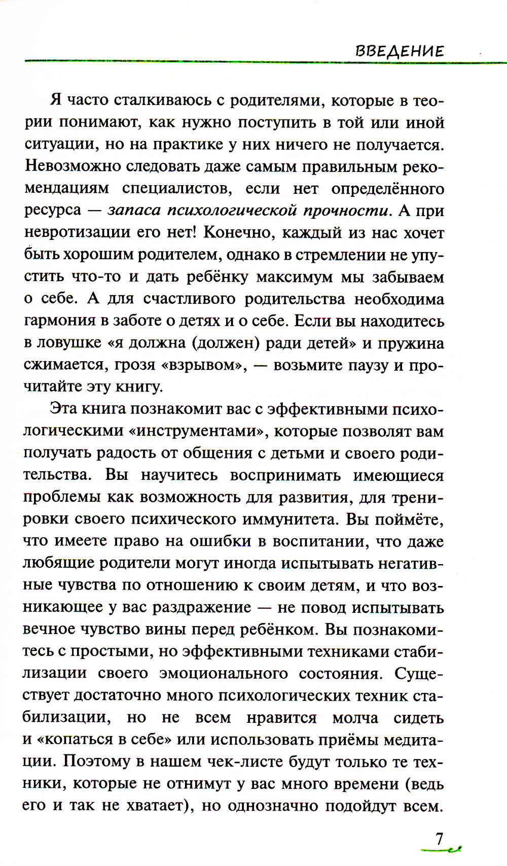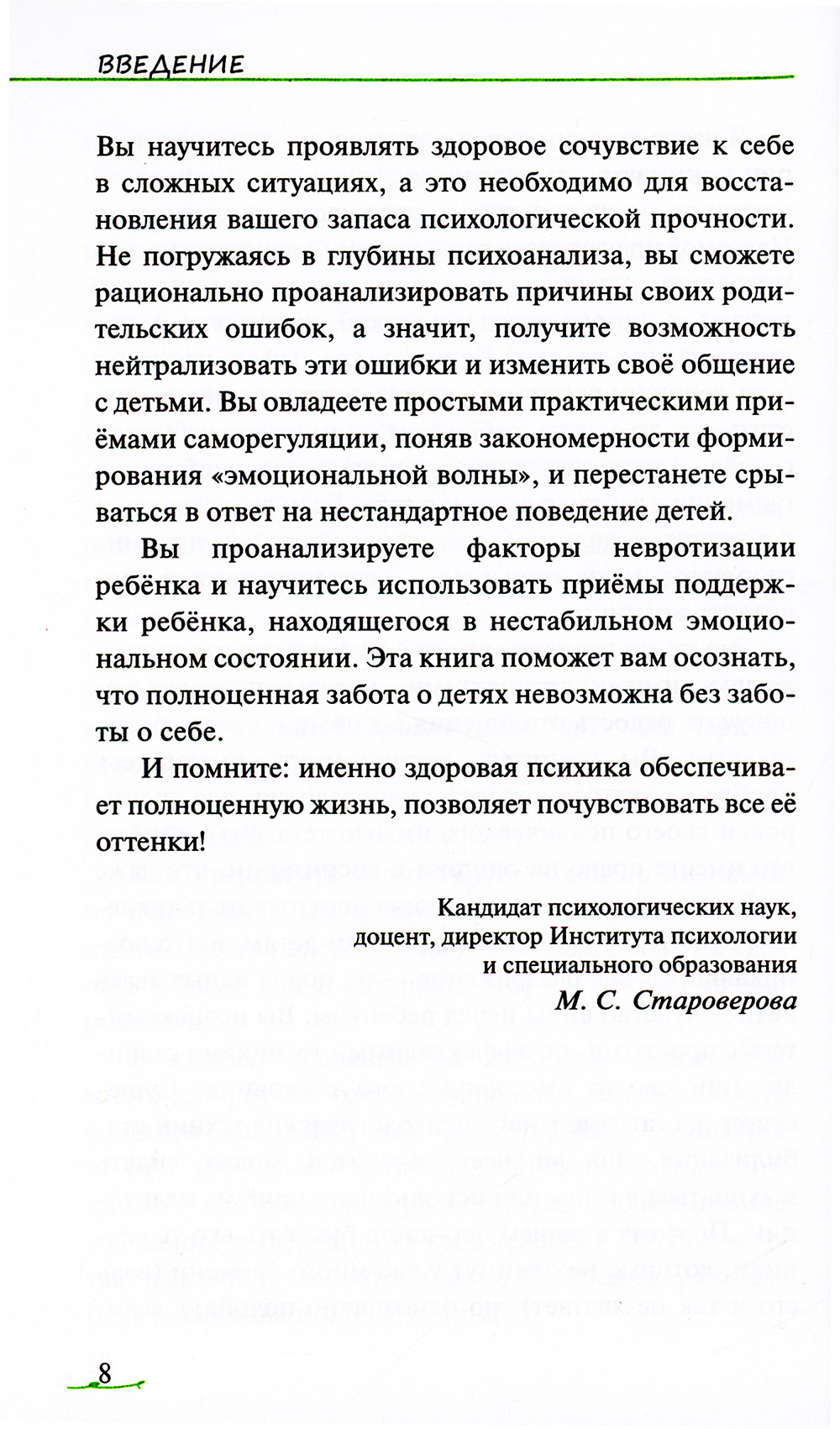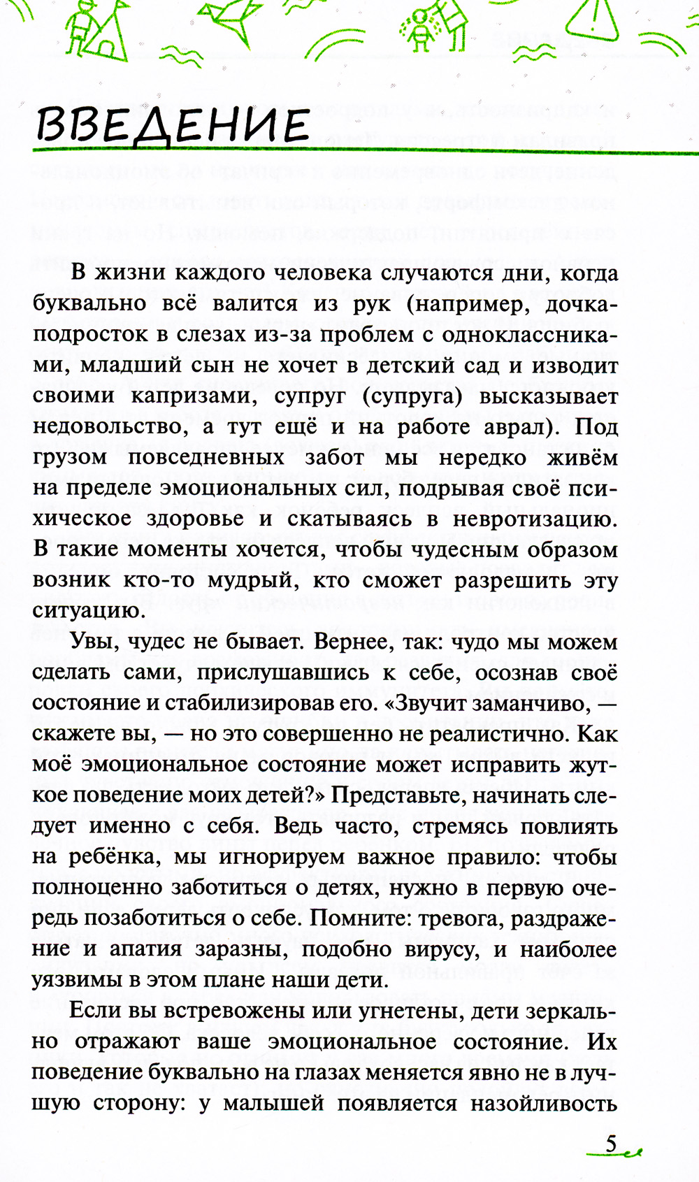 Книга познакомит читателей с техниками стабилизации своего эмоционального состояния и с практическими приёмами саморегуляции; научит воспринимать имеющиеся проблемы как возможность для развития, для тренировки своего психического иммунитета и использовать приёмы поддержки детей, находящихся в нестабильном эмоциональном состоянии. Издание предназначено для родителей, которые хотят научиться правильно взаимодействовать с детьми, получая истинную радость от общения и своего родительства.