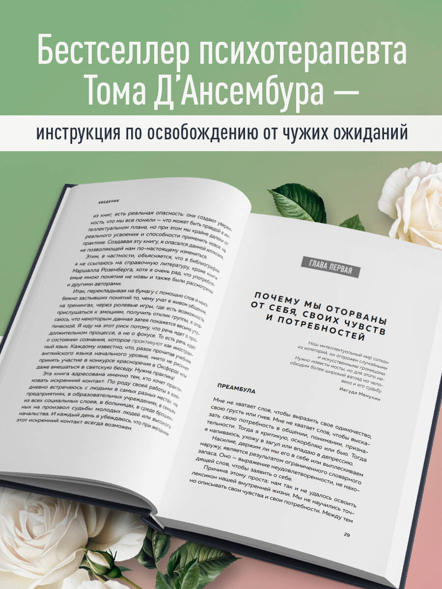 Все беды от того, что мы так и норовим перекроить себя под ожидания окружающих, считает автор этой книги Тома Д'Ансембур. Делаем не то, что хотим, а то, что, как нам кажется, хотят от нас другие. Отсюда обиды, конфликты, недовольство собственной жизнью и отношением к себе других людей. Как быть? Применять принципы «Ненасильственного общения» - системы, которая помогает разобраться со своими настоящими желаниями и учит правильно формулировать запросы к окружающим. Применяйте принципы ННО: - не изнуряйте себя даже ради доброго дела; - наблюдайте, не вынося суждений; - говорите по-настоящему, слушайте по-настоящему; - не приписывайте свои потребности другим; - формулируйте конкретный и реализуемый запрос.| Издательство | ООО "Издательство "Эксмо" |