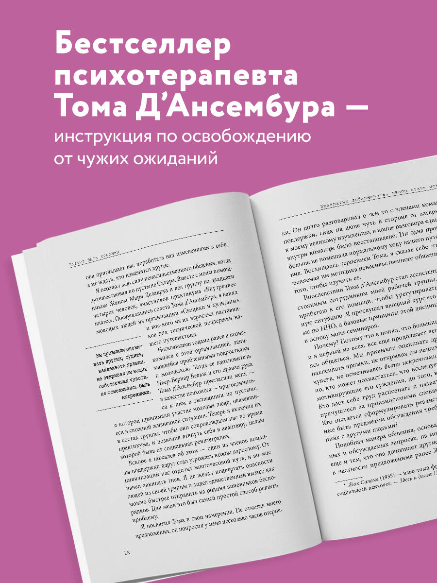 Все беды от того, что мы так и норовим перекроить себя под ожидания окружающих, считает автор этой книги Тома Д'Ансембур. Делаем не то, что хотим, а то, что, как нам кажется, хотят от нас другие. Отсюда обиды, конфликты, недовольство собственной жизнью и отношением к себе других людей. Как быть? Применять принципы «Ненасильственного общения» - системы, которая помогает разобраться со своими настоящими желаниями и учит правильно формулировать запросы к окружающим. Применяйте принципы ННО: - не изнуряйте себя даже ради доброго дела; - наблюдайте, не вынося суждений; - говорите по-настоящему, слушайте по-настоящему; - не приписывайте свои потребности другим; - формулируйте конкретный и реализуемый запрос.