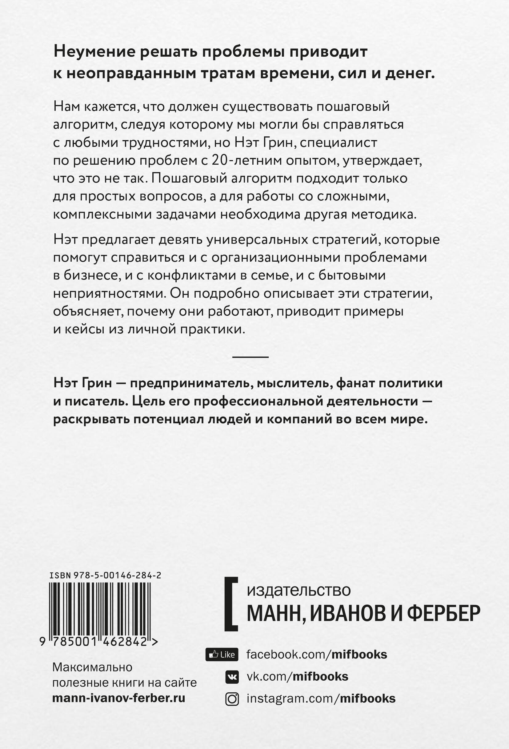 Нэт Грин предлагает девять стратегий, которые помогут решить сложные, комплексные проблемы и в бизнесе, и в личной жизни.| Издательство | МАНН, ИВАНОВ И ФЕРБЕР ООО |