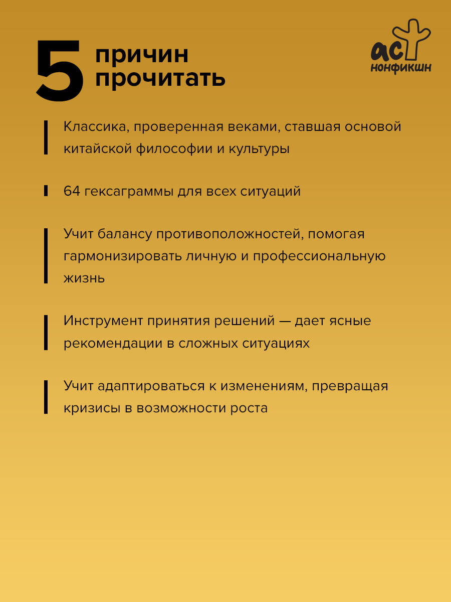 Книга "И-цзин" ("Канон перемен") - одно из древнейших философских и гадательных произведений человечества, созданное более трех тысяч лет назад. Это уникальный путеводитель в мире постоянных трансформаций и возможностей. Он стал основой конфуцианской традиции и не только раскрывает глубочайшие принципы взаимодействия сил инь и ян, но и позволяет узнать ответы на множество вопросов и легко принимать решения. Если вы ищете инструмент для осмысленного планирования, улучшения коммуникаций и постоянного движения вперед - "И-цзин" станет вашим незаменимым помощником и советчиком. Откройте для себя эту мудрую книгу и позвольте ей влиять на ваше будущее!| Издательство | Издательство "АСТ" |