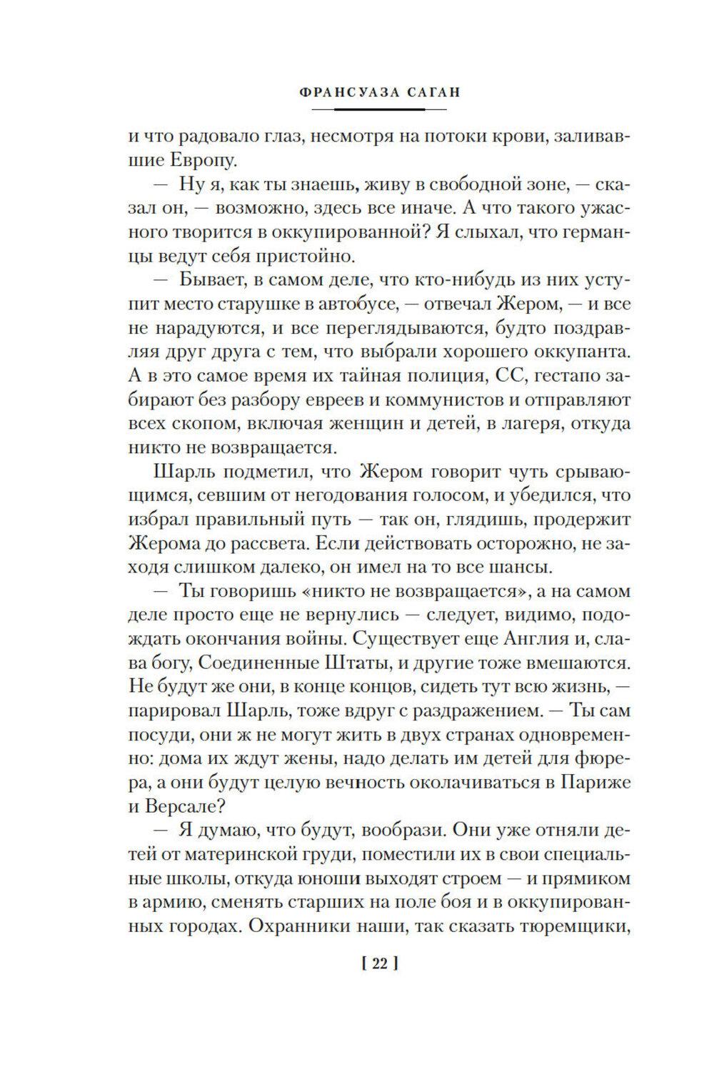 Мадемуазель Шанель от литературы, французский Сэлинджер и Фицджеральд, литературная внучка Колетт, литературная крестница Маргерит Дюрас, скандальная звезда, азартный игрок, прожигательница жизни, тонкий психолог... Франсуаза Саган, прогремевшая с первым же своим романом «Здравствуй, грусть!» (1954), - неизменно свежий голос, кристально честно говорящий о том, что думают и чувствуют живые люди. Книги Саган переводились на десятки языков, их читают и перечитывают миллионы людей по всему миру и увлеченно экранизируют кинематографисты. В своих книгах Саган, чутко настроенная на тонкие вибрации каждого дня, который она проживала, обращалась к историческим событиям нечасто. Однако в обоих романах, включенных в это издание, «И переполнилась чаша» и «Рыбья кровь», действие происходит в 1942 году, во время нацистской оккупации Франции, - их герои, пытаясь быть над схваткой и посреди всеобщего безумия держать иронический нейтралитет, в итоге вынуждены посмотреть в лицо фактам и выбрать сторону. А «В память о лучшем» - сборник воспоминаний Саган: о дружбе с Билли Холидей, Теннесси Уильямсом, Орсоном Уэллсом и Жан-Полем Сартром, о бурной молодости в Сен-Тропезе, о казино и книгах, о творчестве тех, кем она восхищалась, и о ее бескорыстной, беззаветной к ним любви.| Издательство | Азбука |
