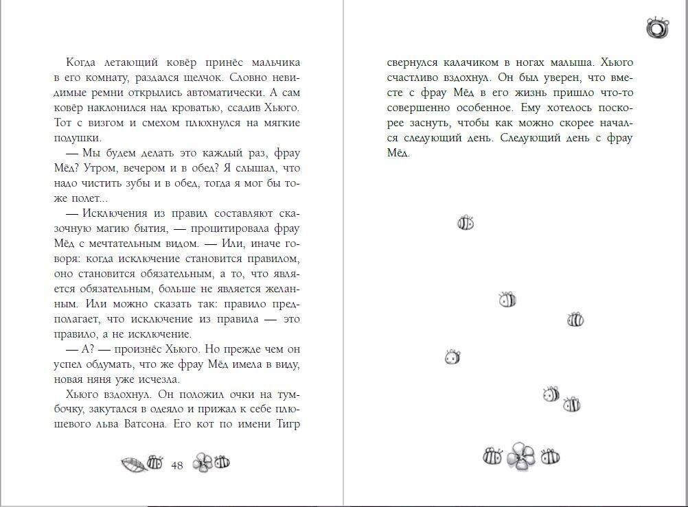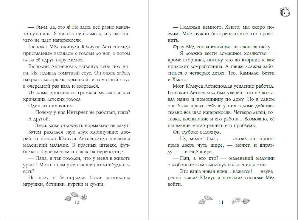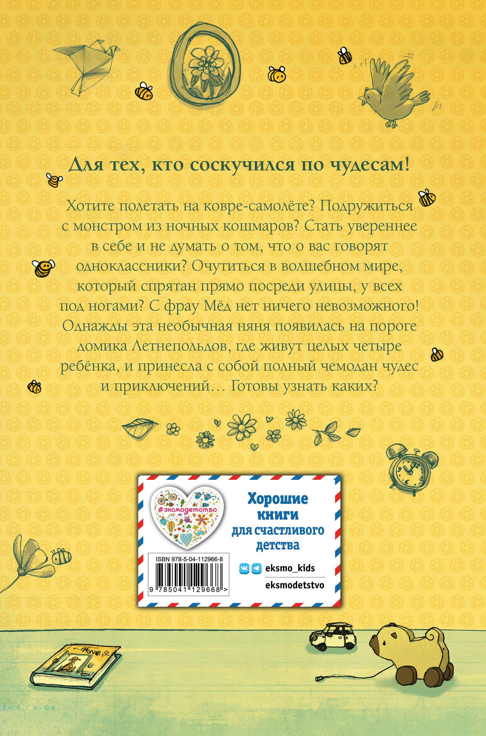 Книга для тех, кто не боится чудес! Хотите полетать на ковре-самолёте? Подружиться с монстром из ночных кошмаров? Стать увереннее в себе и не думать о том, что о вас говорят одноклассники? Очутиться в волшебном мире, который спрятан прямо посреди улицы, у всех под ногами? С фрау Мёд нет ничего невозможного! Однажды эта необычная няня появилась на пороге домика Летнепольдов, где живёт целых четыре ребёнка, и принесла с собой полный чемодан чудес и приключений… Готовы узнать, каких? Весёлая и добрая история для семейного чтения, для мальчиков и девочек от 8-ми лет. Внутри есть небольшие милые чёрно-белые иллюстрации.| Издательство | ООО "Издательство "Эксмо" |