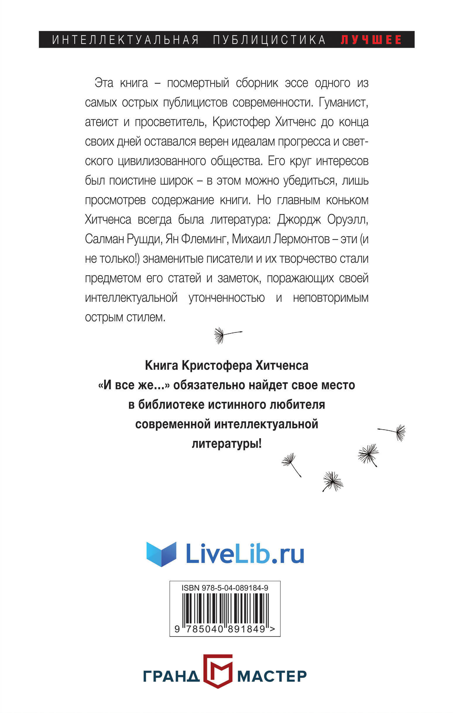 О книге Посмертный сборник статей и заметок едкого и интеллектуально утонченного публициста Кристофера Хитченса. Круг его интересов чрезвычайно широк, энциклопедические знания позволяют подняться над формальным поводом и размышлять на глубокие темы. Героями Хитченса становятся и политики, и литераторы: Че Гевара и Честертон, Лермонтов и Памук, Рушди и Диккенс, Флеминг и Оруэлл. Об авторе Кристофер Хитченс - влиятельнейший американский журналист, публицист и писатель английского происхождения, колумнист Vanity Fair, Slate, The Atlantic, World Affairs, The Nation и Free Inquiry. Скончался в 2011 году, оставив множество неопубликованных работ. Жанр Сборник публицистических эссе. Особенности Автор умеет не только проницательно разобрать предмет своего эссе, но и подняться над формальным поводом, заставить думать на самые неожиданные подчас темы. Каждый текст сборника - изысканное развлечение и мастерски сделанная интеллектуальная провокация для читателя, который ценит умную публицистику. На русском языке выходила в марте 2017 года книга Хитченса «Почему так важен Оруэлл» (издательство «ГрандМастер»).| Издательство | ООО "Издательство "Эксмо" |